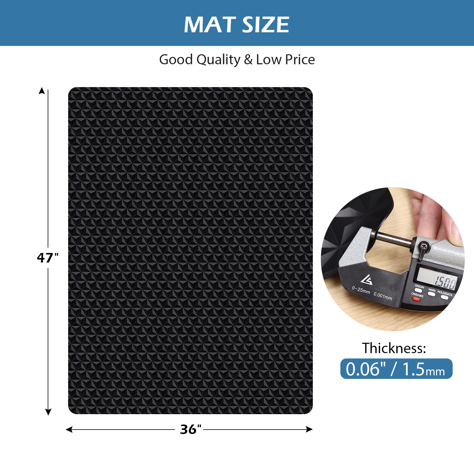 - LARGE SIZE DESK MAT: The big chair mat is enough to protect the floor from scratches and the chairs and casters from getting caught (Product size: 47x36in.; Thickness: 1.5mm / 0.06''. It allows the chair casters to move easily while carrying out daily tasks, but has enough grip to maintain controlled rolling so the chair doesn't skid around, and helping reduce the risk of leg fatigue.
