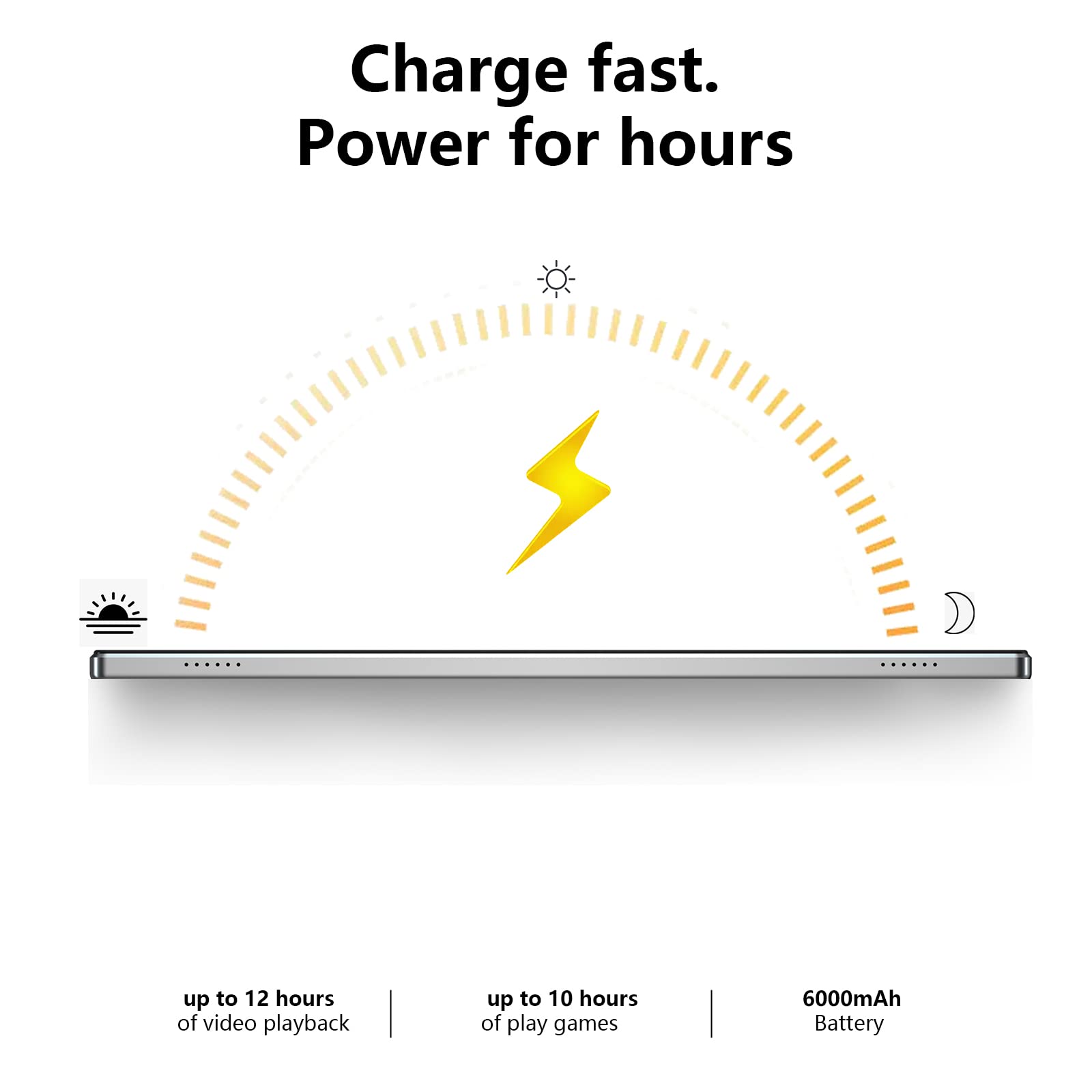 - 【Long Battery Life】 6000mAh rechargeable battery and low power CPU allow you to download many movies, e-books and music. The battery lasts up to 8-12 hours on a single charge, making it convenient for long flights, camping, and road trips.