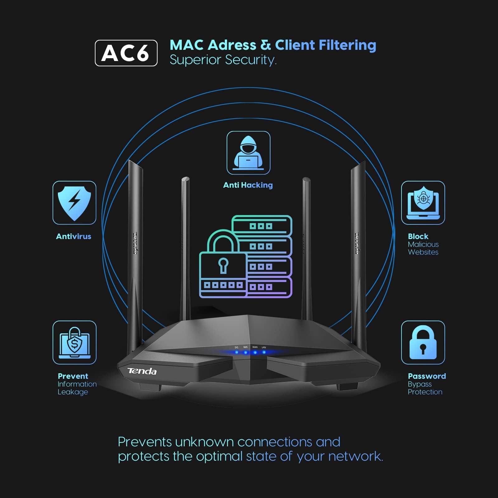 - 𝐀𝐧𝐭𝐞𝐧𝐧𝐚𝐬 𝐌𝐚𝐱𝐢𝐦𝐮𝐦 𝐒𝐢𝐠𝐧𝐚𝐥 𝐂𝐨𝐯𝐞𝐫𝐚𝐠𝐞: The Tenda Ac6 Is Equipped With Four Powerful 6Dbi Antennas, Delivering High Speed Internet Throughout Your Home And Provides Seamless Coverage For Up To 2000 Sq. Ft. Output: Dc 9V1A