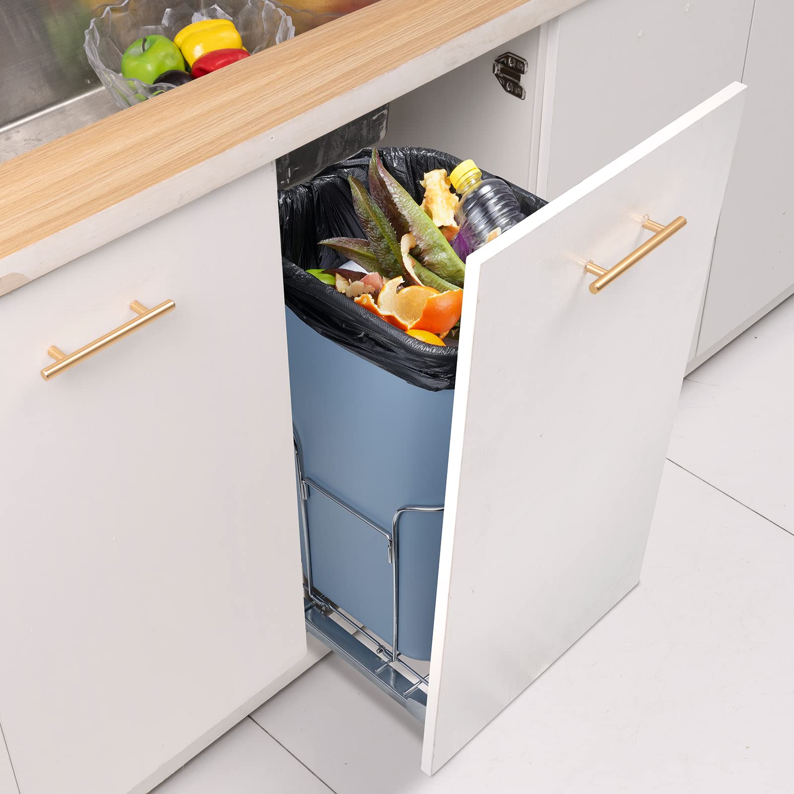 - Large Waste Container: Our pull-out garbage can, with 35L large container, lets you get rid of the trouble of taking out the garbage frequently, and can perfectly satisfy your home and commercial demands.