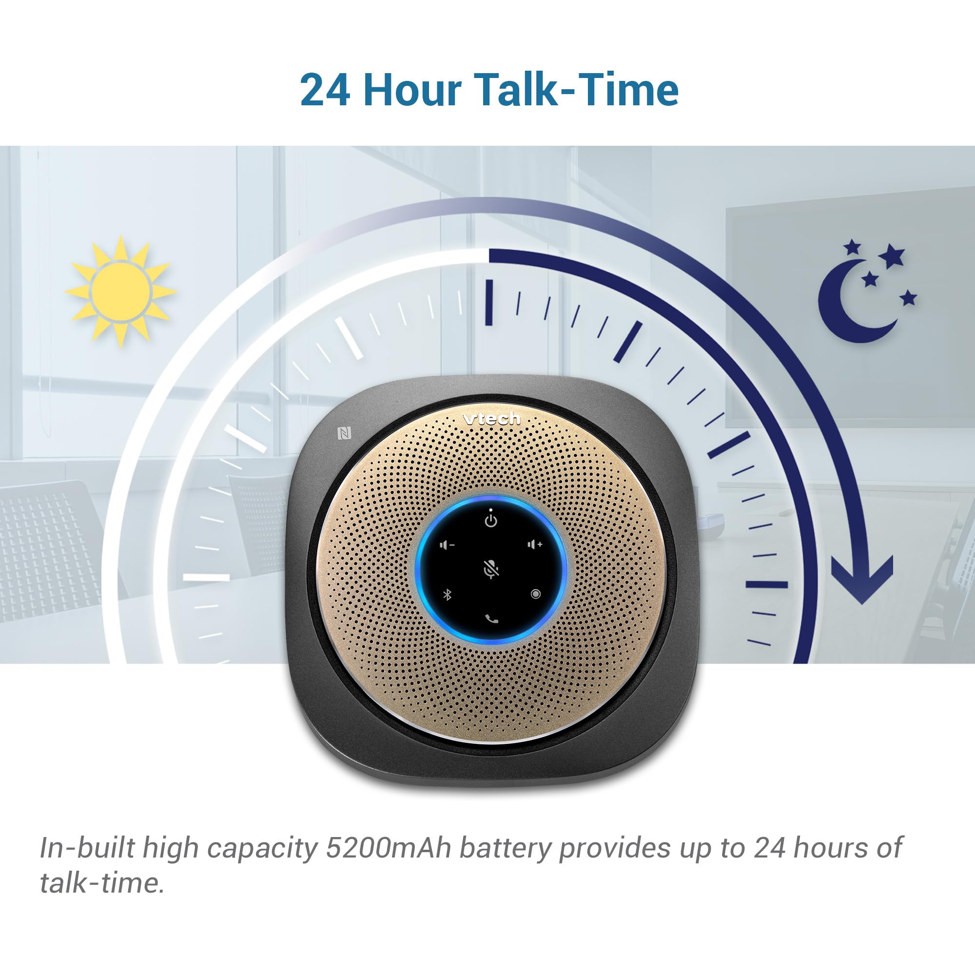 - [Long Battery Life of up to 24 Hours of Call Time with Reverse Charging] - With 5,200 mAh battery enough to power multiple meetings across a week from anywhere (Home, Car, Cafe, Office) without needing to recharge. Additionally, use this unit as battery backup to reverse charge your mobile or other devices in case of emergency when needed.