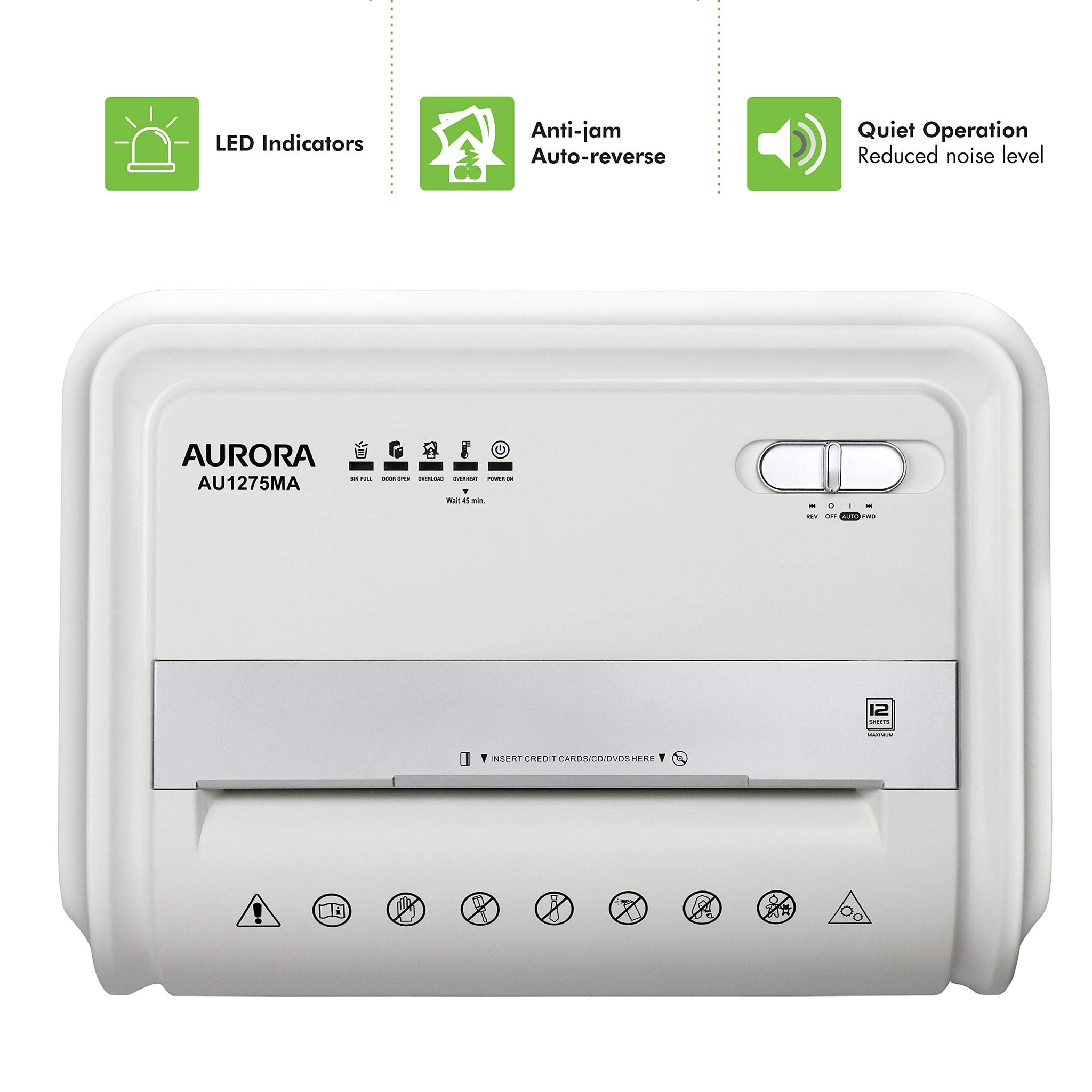 AU1275MA Professional Grade 12-Sheet Micro-Cut Paper and CD/Credit Card Shredder/ 60 Minutes Continuous Run Time, White/Gray