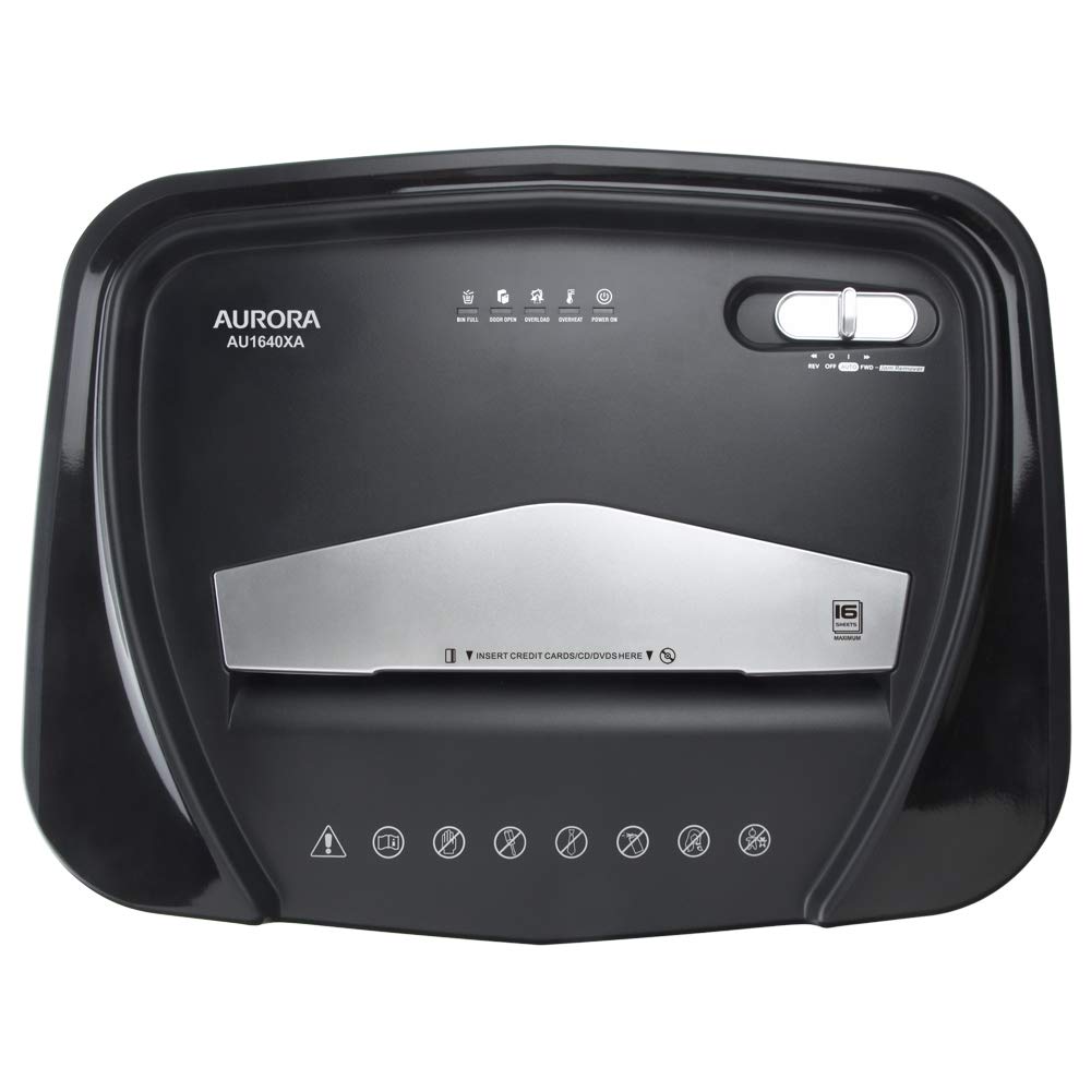Details: The Aurora AU1640XA 16-Sheet crosscut paper/ CD/ credit card shredder with 5. 0-Gallon PULLOUT basket is the perfect business and home office device to keep you safe from identity theft. The AU1640XA accepts up to 16 sheets of paper at a time and shreds them into small pieces (5/32 by 1-7/32 inches), security level P-4. In addition to paper, the AU1640XA shreds CDs/DVDs/credit cards, keeping vital information from falling into the wrong hands. The throat of the shredder is 8. 7 inches wide and has the casters for easy mobility.