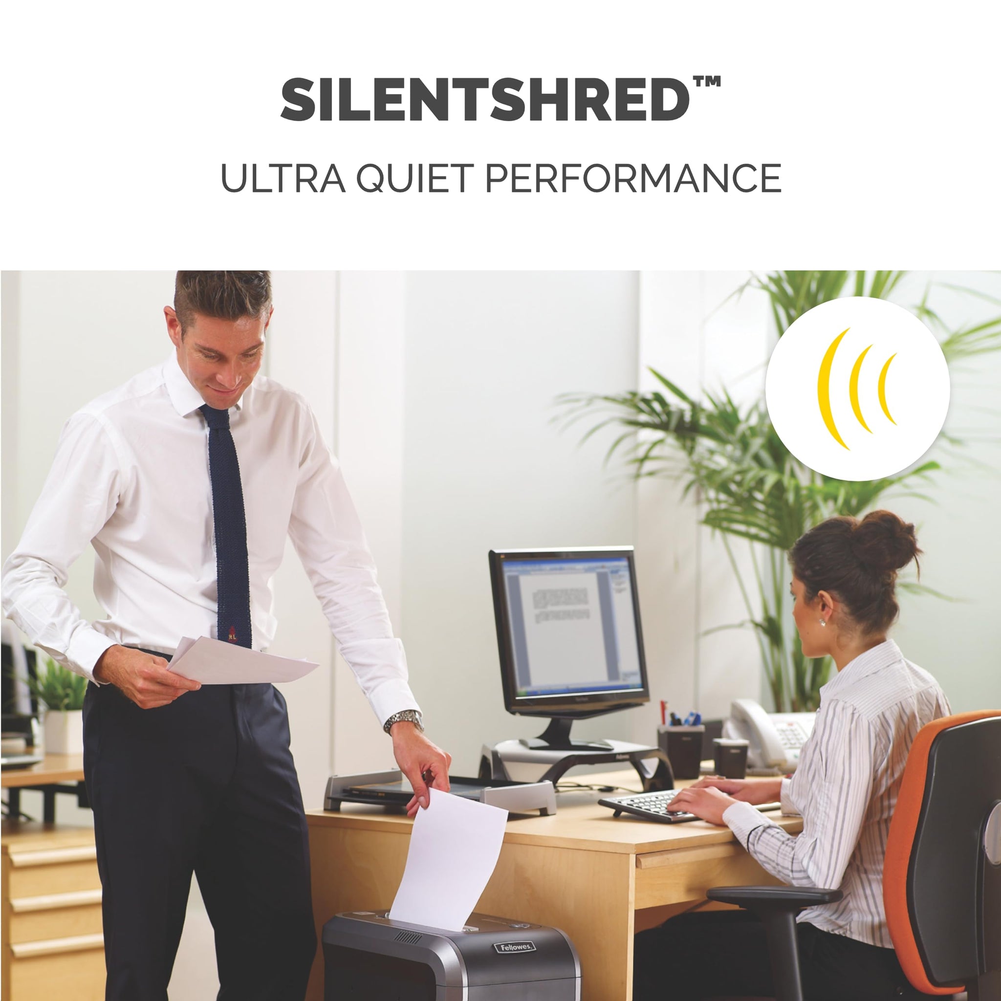 - Perfect for shared workspaces, this portable shredder has ultra-quiet operation and automatically detects and powers through tough jobs to prevent jams; Also includes a 9-gallon pull-out bin with a LED bin-full indicator