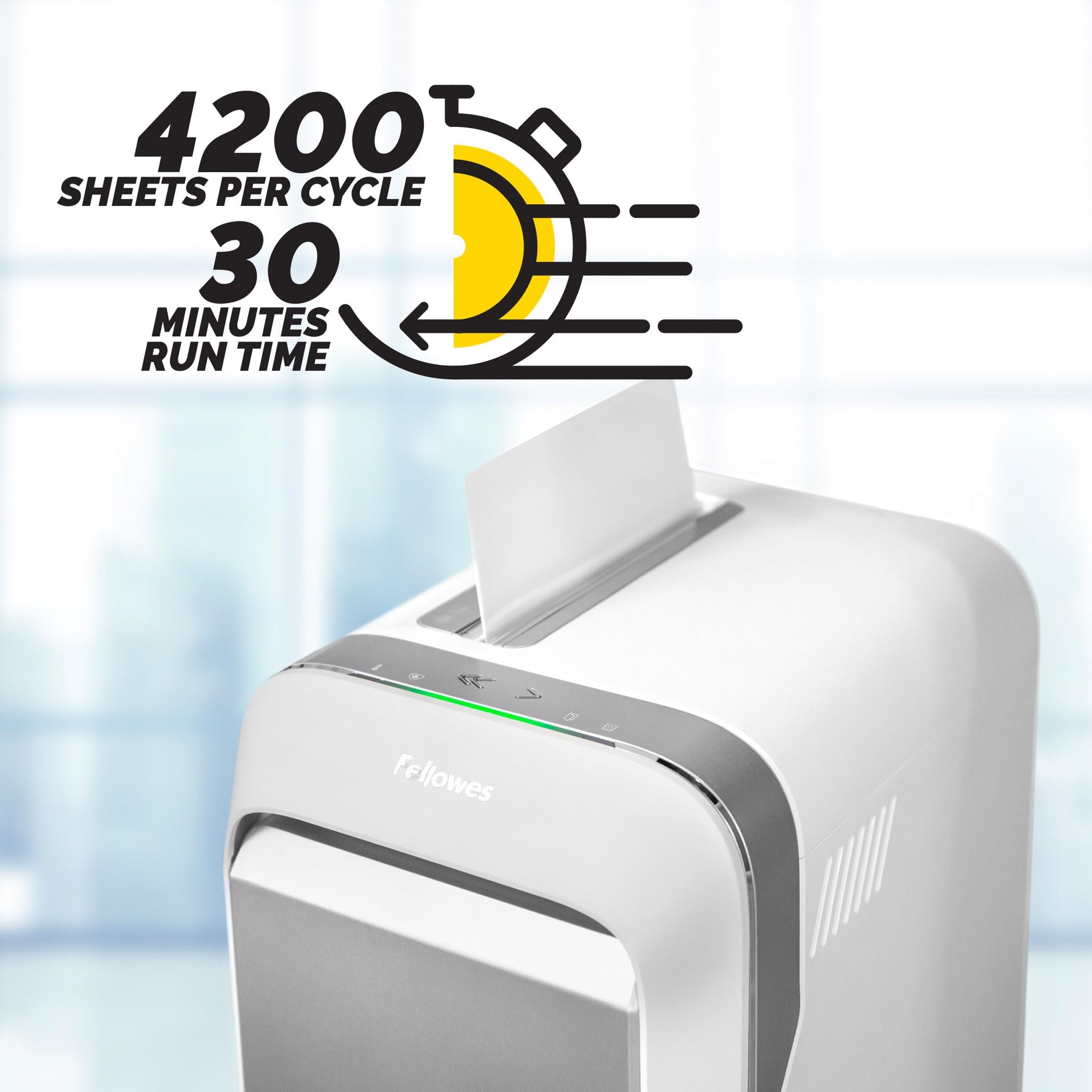Details: The Fellowes LX220 white paper shredder effortlessly power through paper jams with 100% Jam Proof technology. Monitor real time performance with bin full and runtime indicators and optimize how many sheets to feed at one time with the efficiency meter. Integrated Safe Sense Technology keeps shredding safe and accident free. Shreds 20 sheets of paper per pass into 1,257 5/32” x 1/2” micro-cut particles for superior security (Security Level P-4). Also shreds staples, paper clips, plastic credit cards and unopened junk mail. Shreds continuously for up to 30 minutes before a 15-minute cool down period is needed allowing you to complete your shredding job in one sitting. Patented responsive technology provides next generation responsiveness for superior shredding performance. 100% Jam Proof System automatically detects and powers through tough jobs for frustration-free shredding. Efficiency Meter indicates the potential for increased sheet capacity in real-time to maximize productivity. Integrated Safe Sense Technology stops shredding when hands or paws touch the paper entry. Shreds 20 sheets of paper per pass into tiny micro-cut particles for superior security. Also shreds staples, paper clips and credit cards.