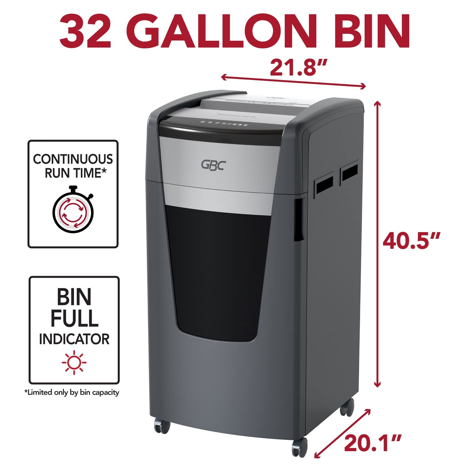 - EXTENDED RUN TIME – With a high-performing motor and large 32 gallon bin, you can shred for even longer. This shredder runs continuously until the waste bin is full. Perfect for both large and small shredding jobs.