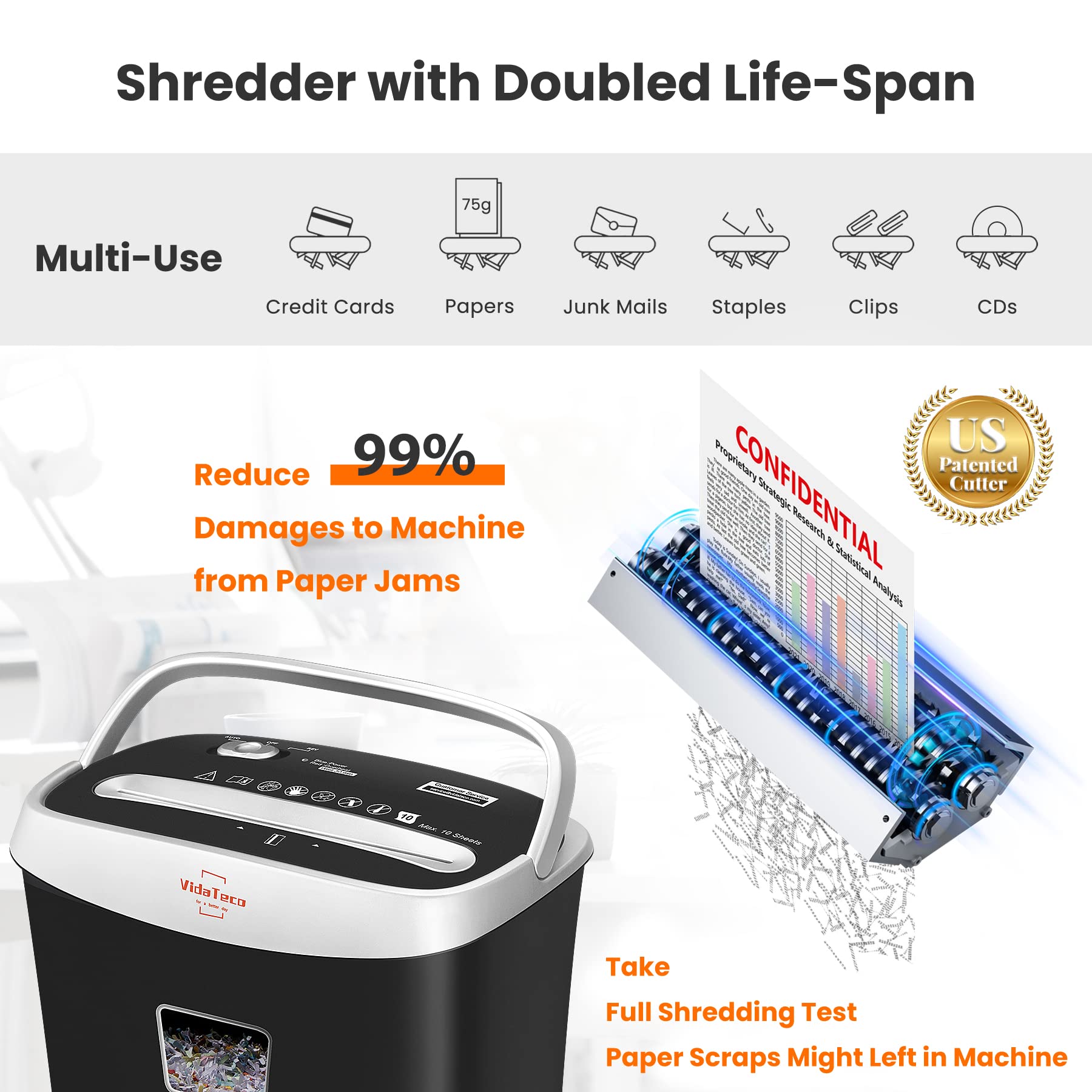 10-Sheet Heavy Duty Cross-Cut Paper and Credit Card Shredder, Shredder for Office, High Security P5 Office Home Use Office Equipment with 4 Casters, Black