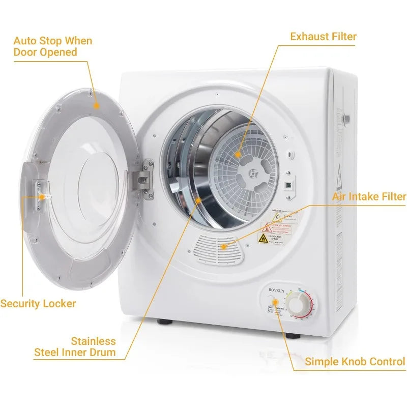 Upgrade your laundry game with the Portable Clothes Dryer. This innovative front load tumble dryer machine is designed for maximum performance and convenience. With a sleek stainless steel tub, you can trust that your clothes will come out perfectly dry every time. Perfect for small spaces and on-the-go drying needs.