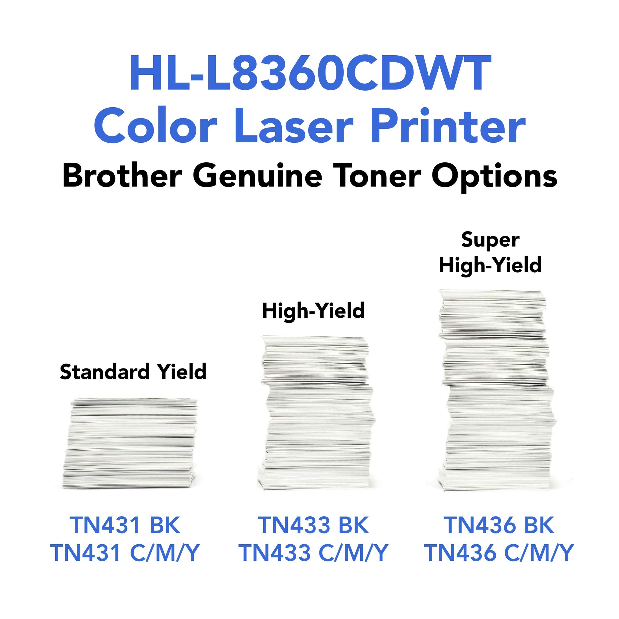 - FOR USE WITH BROTHER GENUINE TONERS: TN431: TN431BK, TN431C, TN431Y, TN431M, TN433: TN433BK, TN433C, TN433Y, TN433M, TN436: TN436, TN436BK, TN436C, TN436Y, TN436M