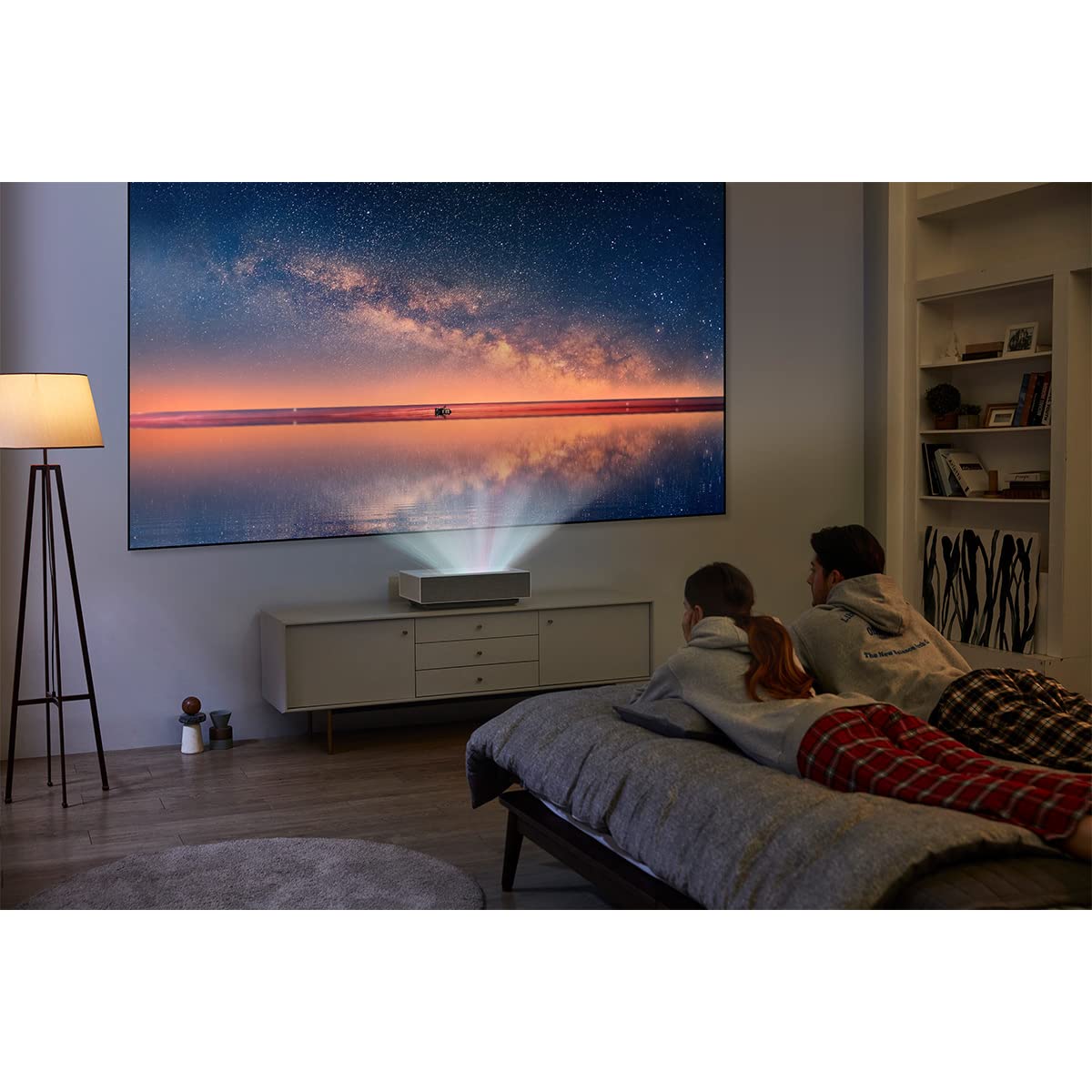 Details: The LG CineBeam HU715Q puts cinema-quality entertainment within reach, transforming your living room into a mesmerizing home theater. 4K detail astounds in larger-than-life sizes with content projected at close range—for better usability in more spaces. Ultra-short 0.22 Throw Ratio delivers an 80-inch screen when placed less than five inches from the wall, making any room the perfect size for your projector. (4.65" for 80" screen, 8.54" for 100" screen, and 12.48" for 120" screen). Embedded speakers and hi-fi sound deliver rich, clear audio that provides the full sensory experience. Apple AirPlay 2 & HomeKit compatibility allow you to wirelessly control your projector plus cast and mirror content from any iOS or MacOS device, no Apple TV necessary.