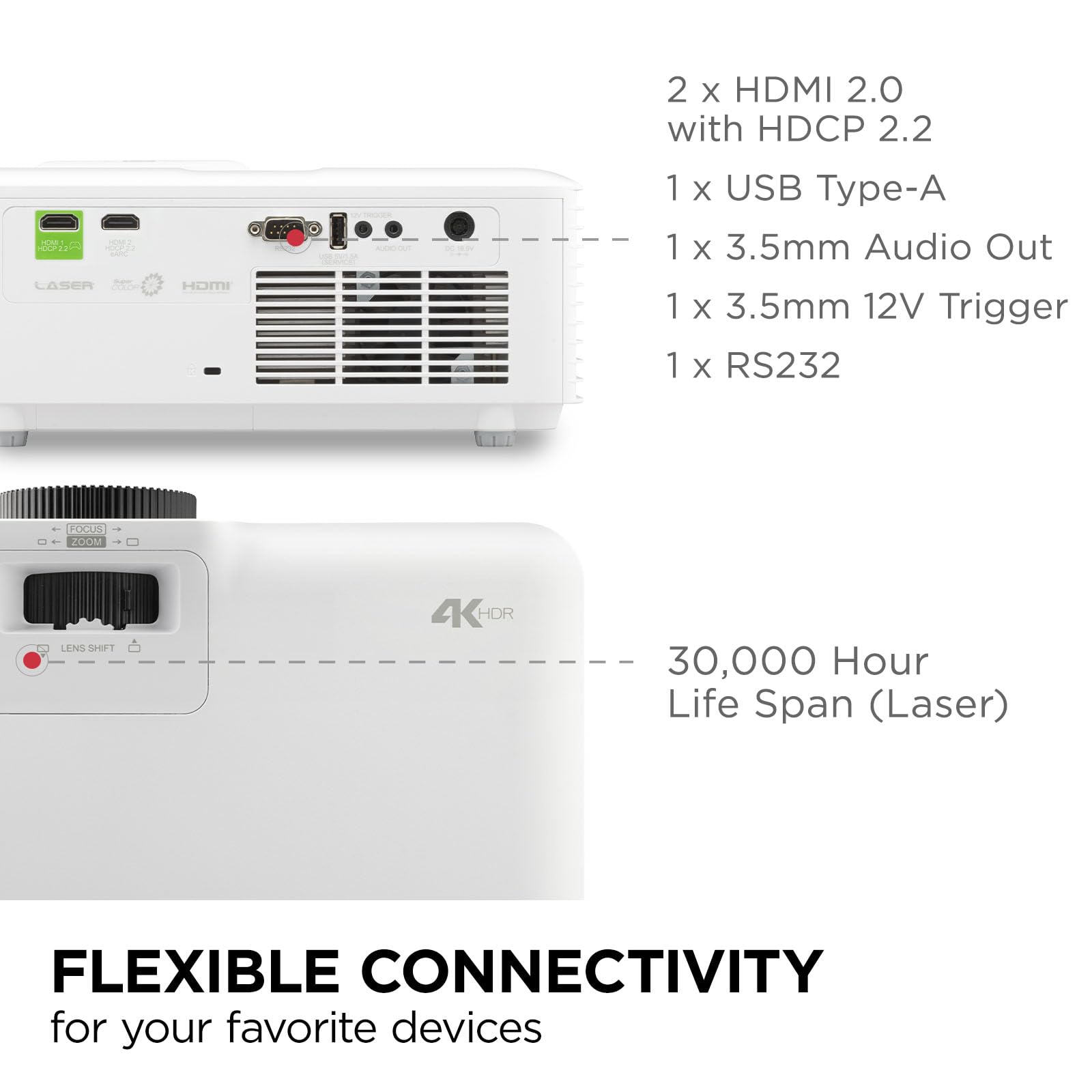 - SUPERSIZED MOVIES AND GAMES: Up to 4K UHD (3840x2160p) laser projector with high brightness 3500 lumens and images up to 300"