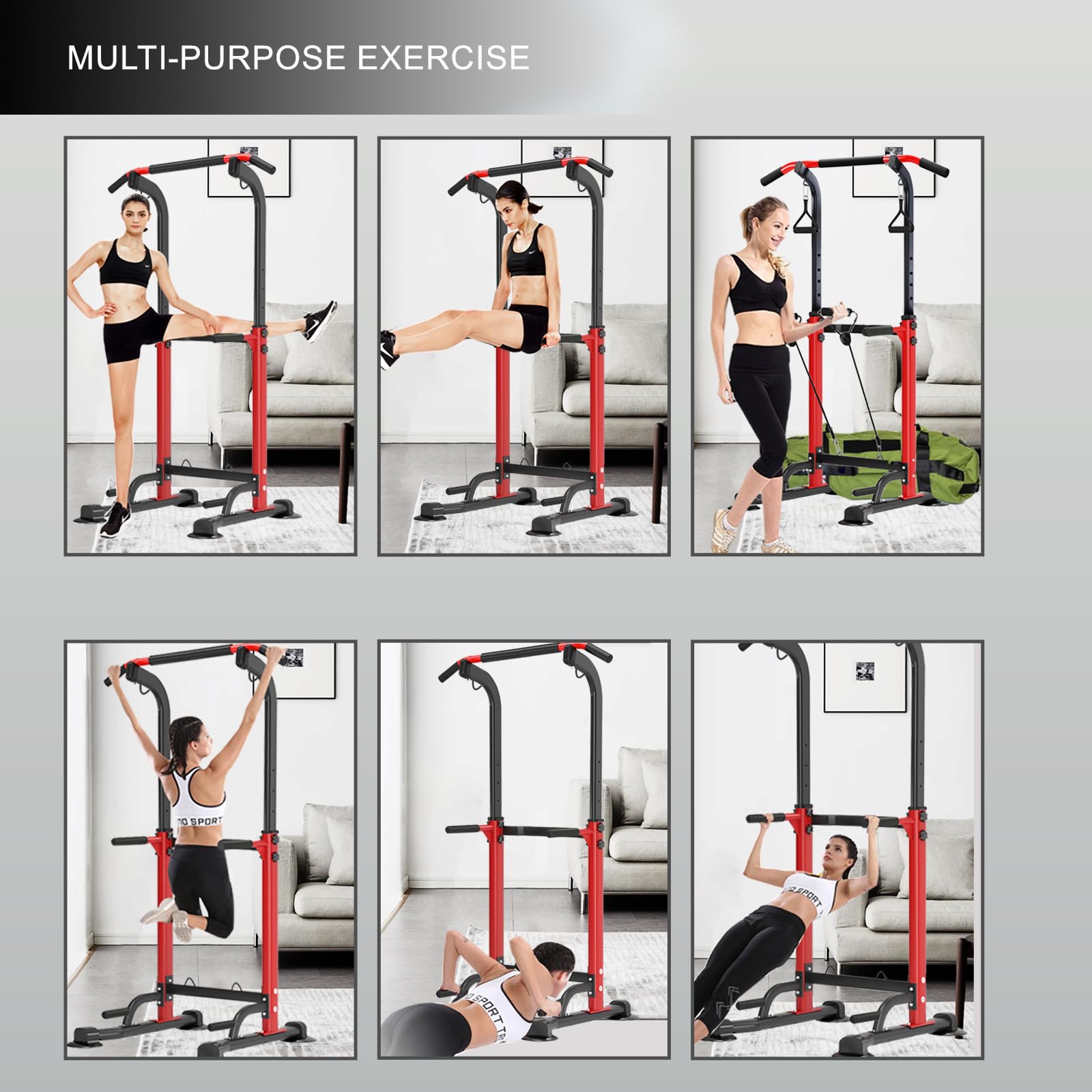 Sportsroyals Power Tower Dip Station Pull Up Bar for Home Gym Strength Training Workout Equipment Newer Version 450LBS.