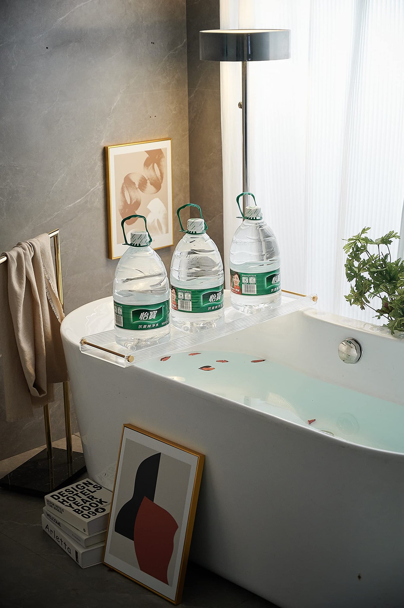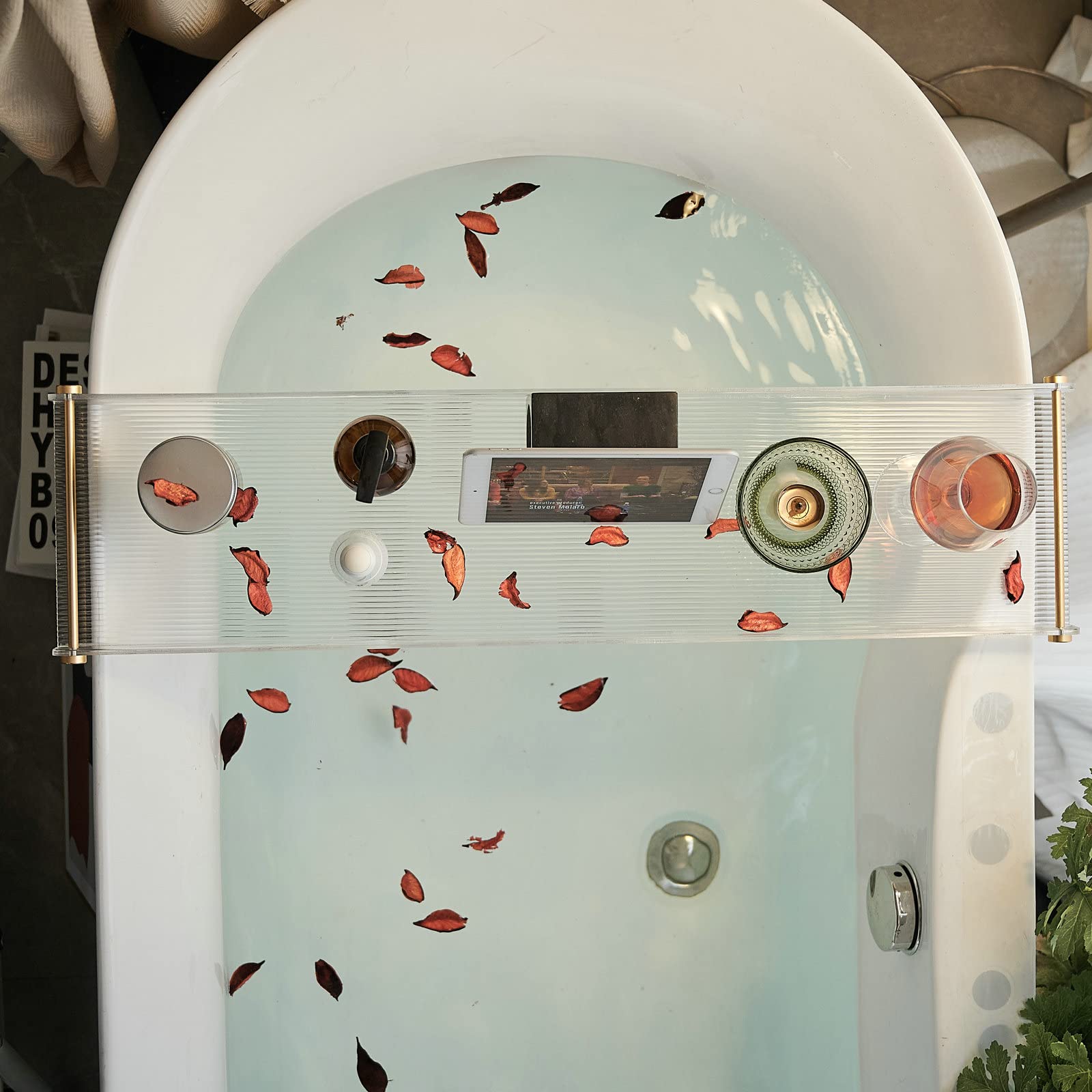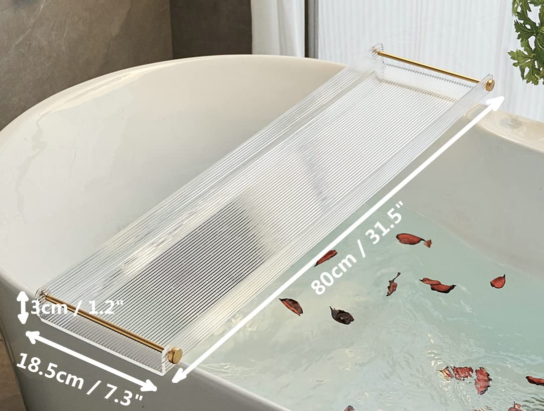 Presenting our luxurious Bathtub Tray, made from high-quality acrylic material for a spa-like bathing experience. Our Acrylic Bath Tray features a sleek design with non-slip surface, perfect for keeping your bath essentials within reach. Enjoy a relaxing soak with our Bathtub Caddy, complete with elegant gold brushed handles for added style and functionality.