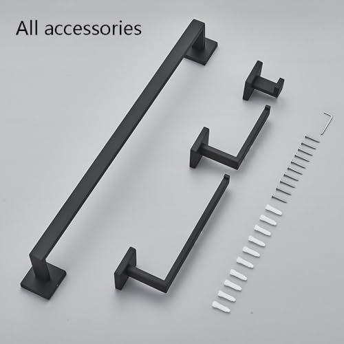 Elevate your bathroom decor with our luxurious Golden Bathroom Accessories Set. This 4-piece set includes a sleek wall mount towel bar, two sturdy robe hooks, and a modern toilet paper roll holder - all made from durable stainless steel. The black finish adds a touch of elegance to any bathroom. Upgrade your space with this stylish and functional set today!