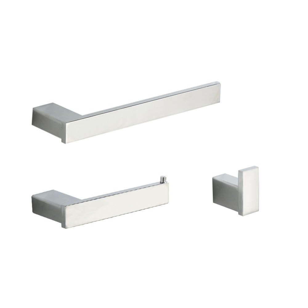 Elevate the look of your bathroom with our premium Stainless Steel Bathroom Hardware Set. This 3 PCS Set includes a Robe Hook, Toilet Roll Paper Holder, and Towel Bar all crafted from durable and sleek stainless steel. Easily mount them onto your bathroom wall to add a touch of elegance and practicality to your space.