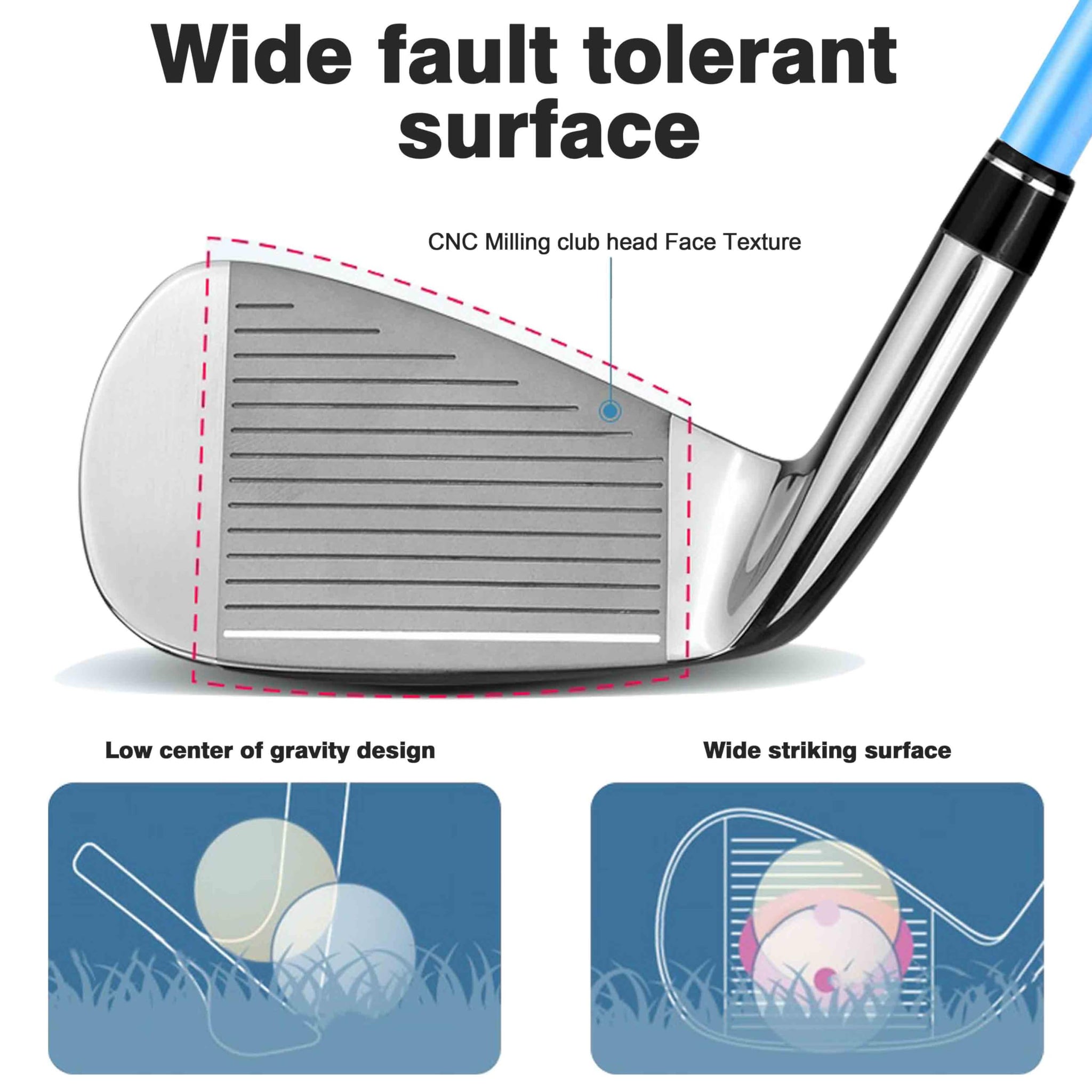 - SUS431 stainless steel irons with low center of gravity design and enlarged sweet spot for easy ball launch.