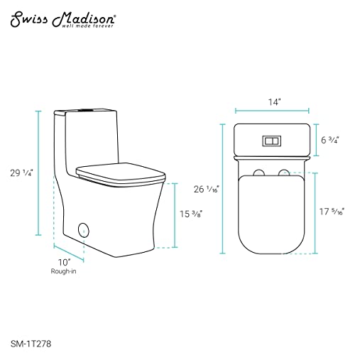 Upgrade your bathroom with the sleek and modern Swiss Madison Well Made Forever SM-1T278 Concorde One Piece Square Toilet. This dual flush toilet offers both efficiency and style with its 1.1/1.6 gpf water-saving feature. The 10" rough in makes installation a breeze, while the durable construction ensures this toilet will last for years to come.