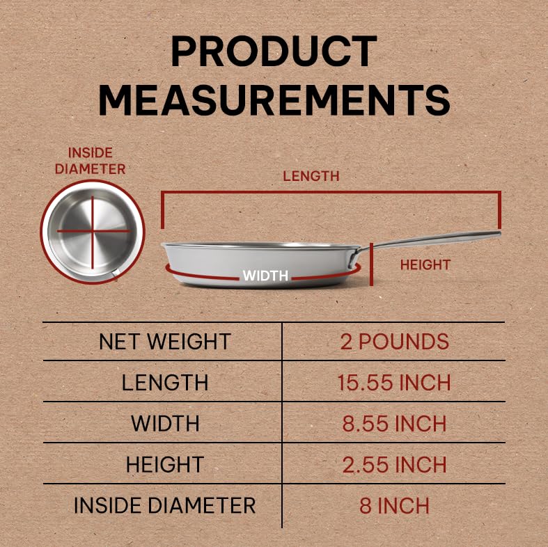 3-piece Stainless Steel Skillet & Frying Pan Set, Includes 8 inch, 10 inch, 12 inch, Made In America