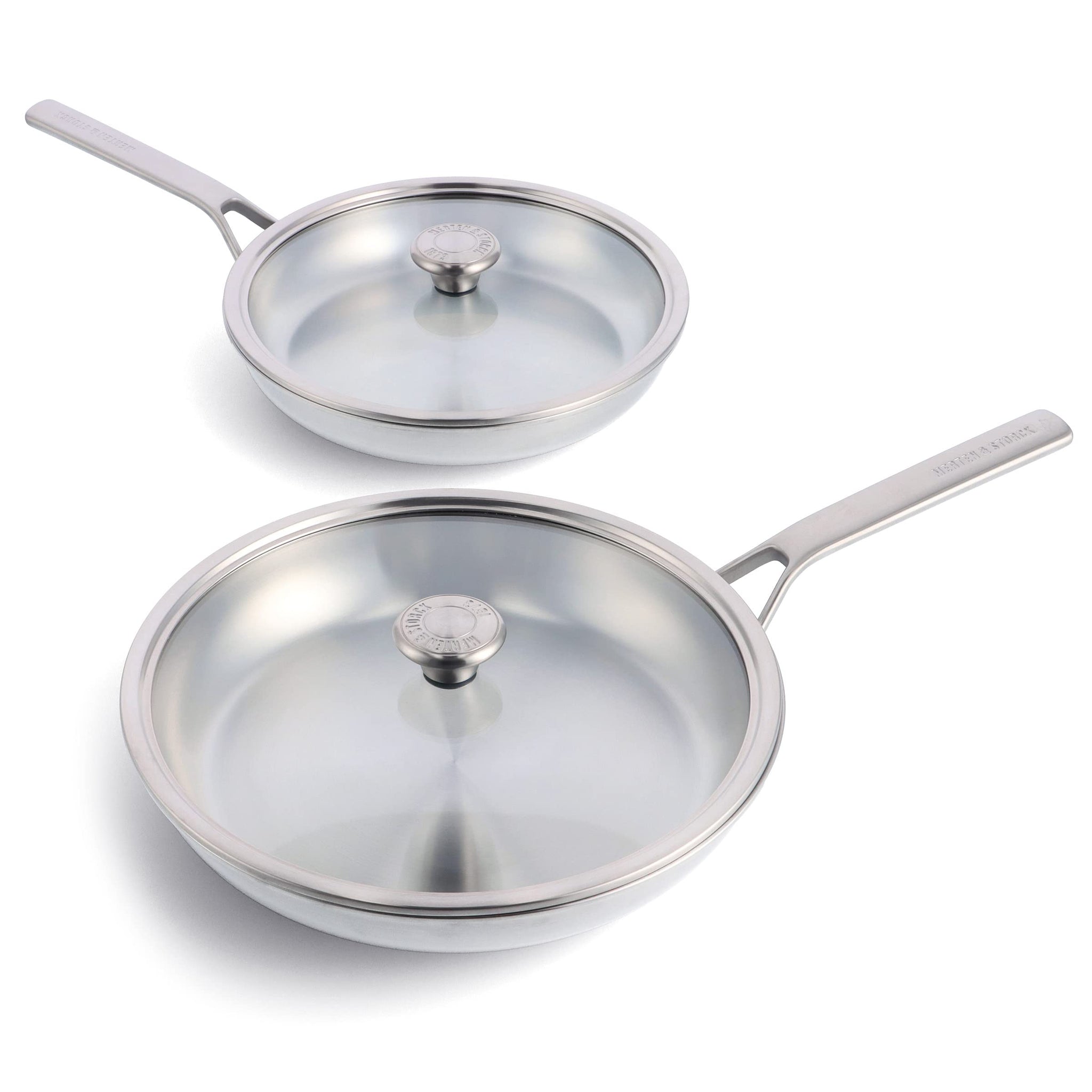 Details: Build a better kitchen with Steel. Recognized throughout the culinary world as the pinnacle of performance, 3-ply stainless steel offers the best and most versatile cooking experience. Ideal for daily use, this frying pan set offers two versatile sizes so you can tackle a wide range of culinary tasks. Whatever you’re cooking, Steel’s multi-layer design distributes heat evenly for uniform browning, which is why it’s a must for serious kitchens. The snag-free interior prevents food traps and the pouring rims make pan-to-plate transfers effortless. Capacity marks on the pots and sauté pan make it easy to keep track of your measurements and make your meals more precise. From simple stovetop-to-oven transfers to delicious pan sauces, these stainless steel pans make high-level cooking easier. These fully clad pans features two layers of stainless steel with an aluminum core, a combo that brings out the best in both metals and results an incredible stovetop experience. Plus, it won’t wear out. Virtually indestructible, with proper care Steel will last a lifetime. Metal utensil safe. Oven safe up to 600˚F. Dishwasher safe.