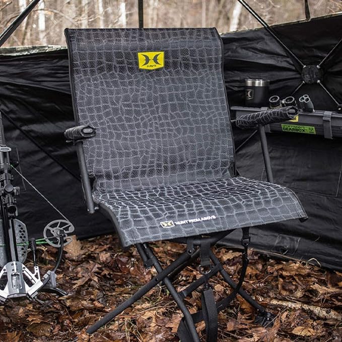 - 360-DEGREE SPIN - This chair's innovative 360-degree spin capability allows you to effortlessly rotate into position with zero-noise performance; This convenient feature enables you to shoot from any direction within your blind without alerting your prey
