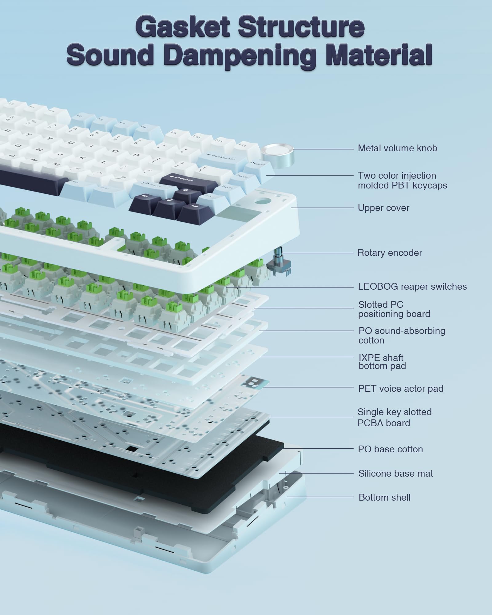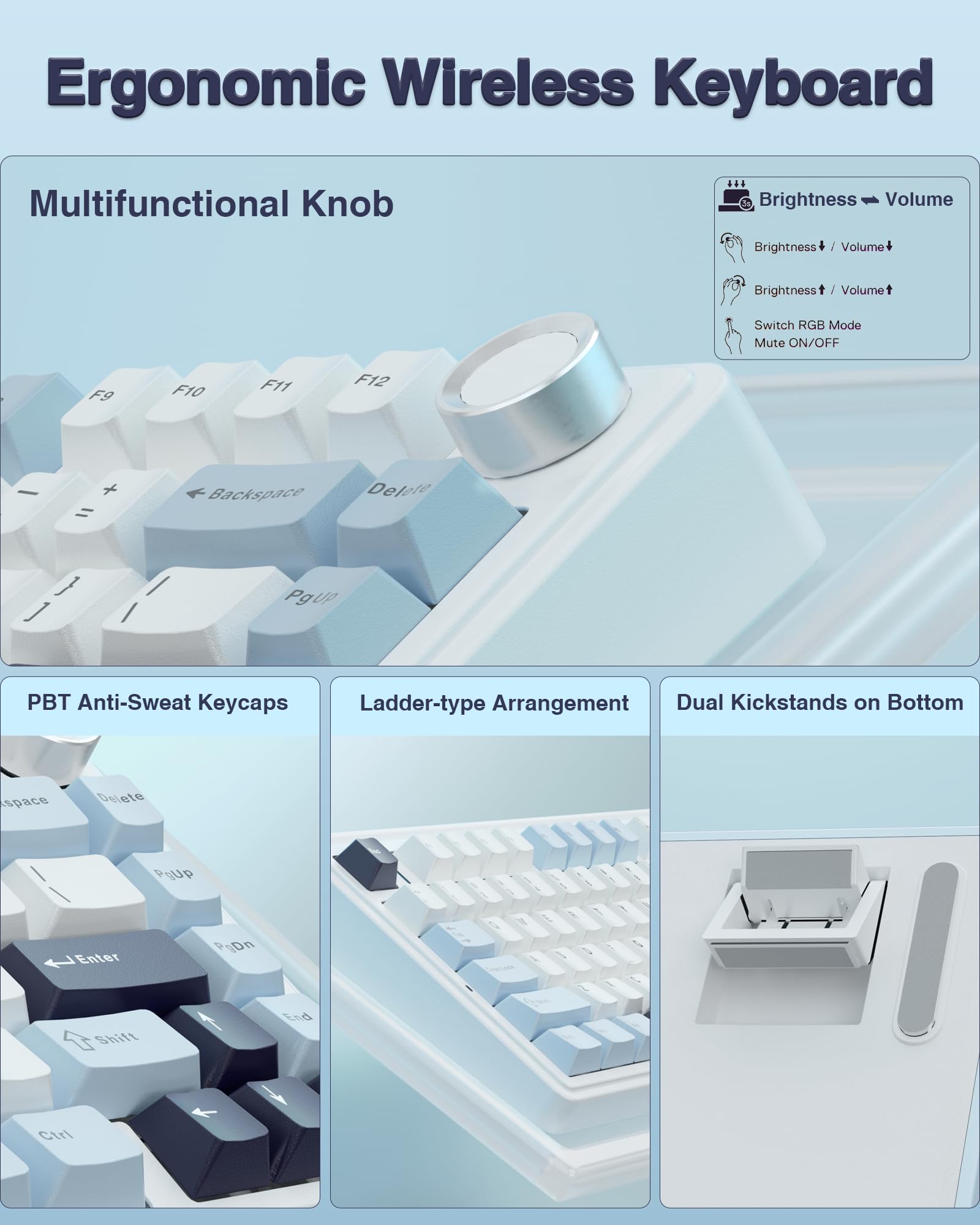 Wireless Mechanical Keyboard, Hot Swappable Gasket Custom Gaming Keyboard (White Grey, Graywood V3 Switch)