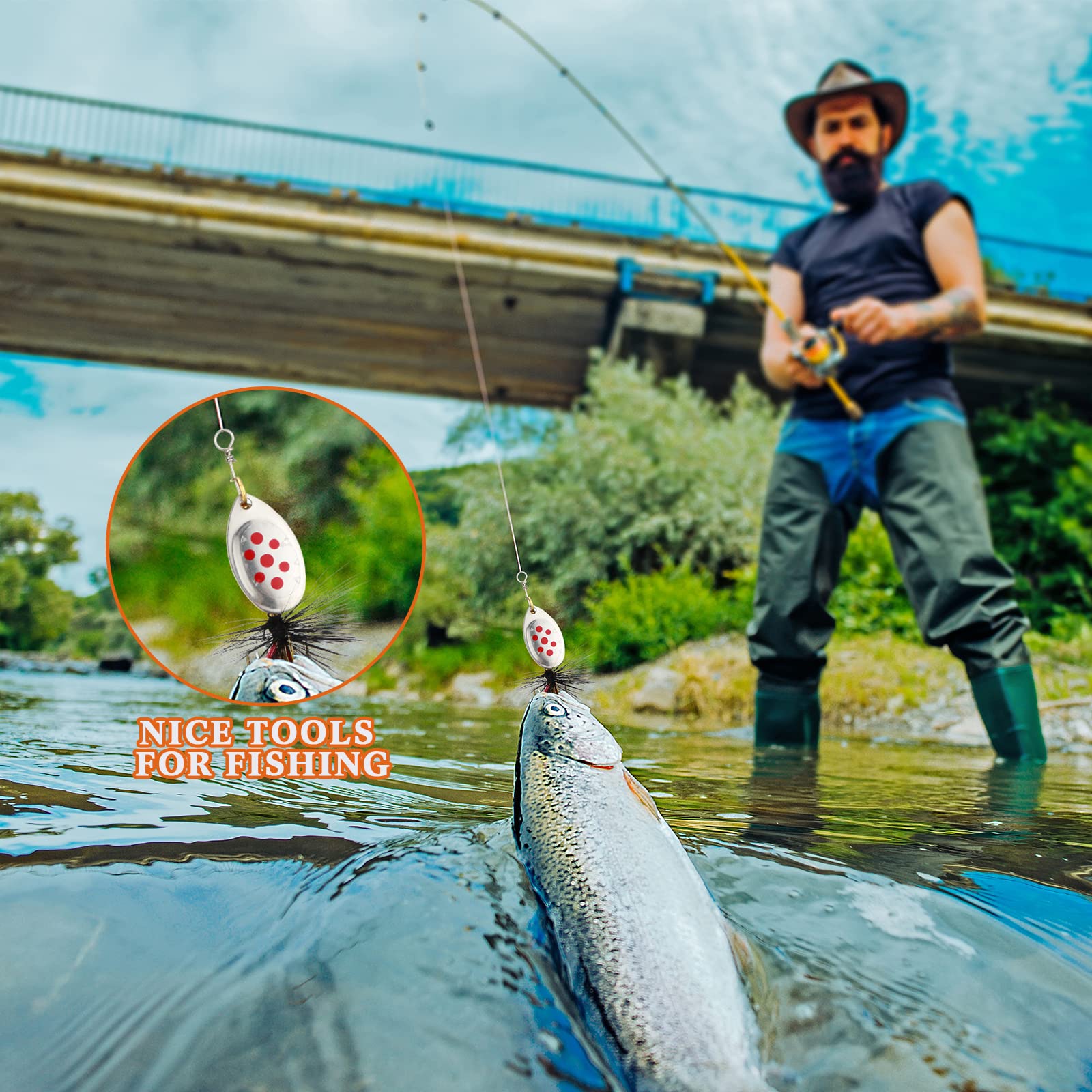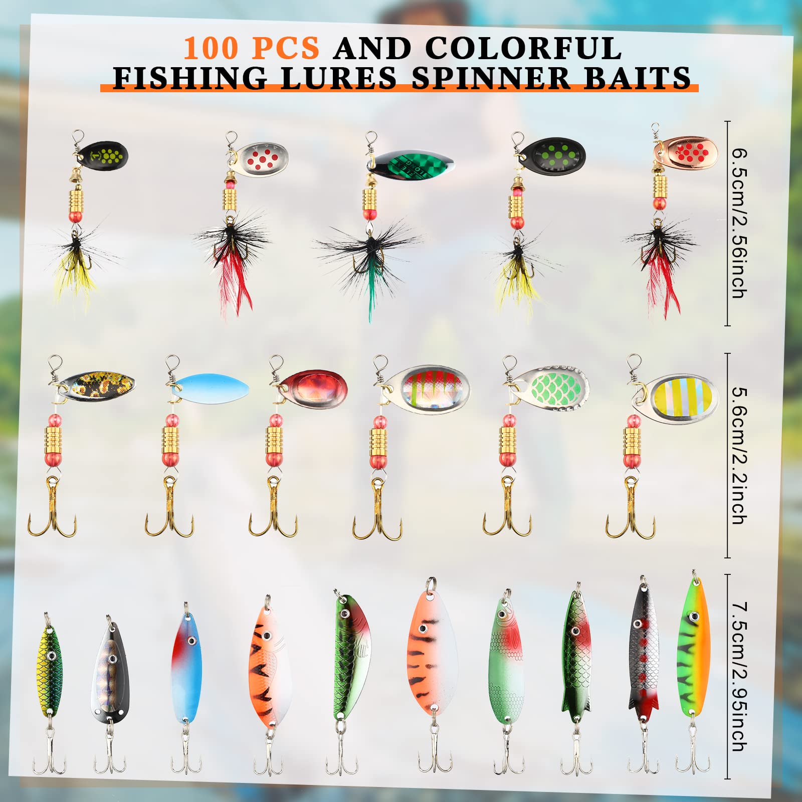 - Sufficient Quantity: you will receive 100 pieces of bass baits in various colors and styles, 5 pieces of fishing hooks with rooster feather, 10 pieces of metal spoon baits, 85 pieces of fishing lure spinnerbaits, comes with 4 pieces of fishing boxes, ideal for storing your of baits, enough to meet your fishing needs