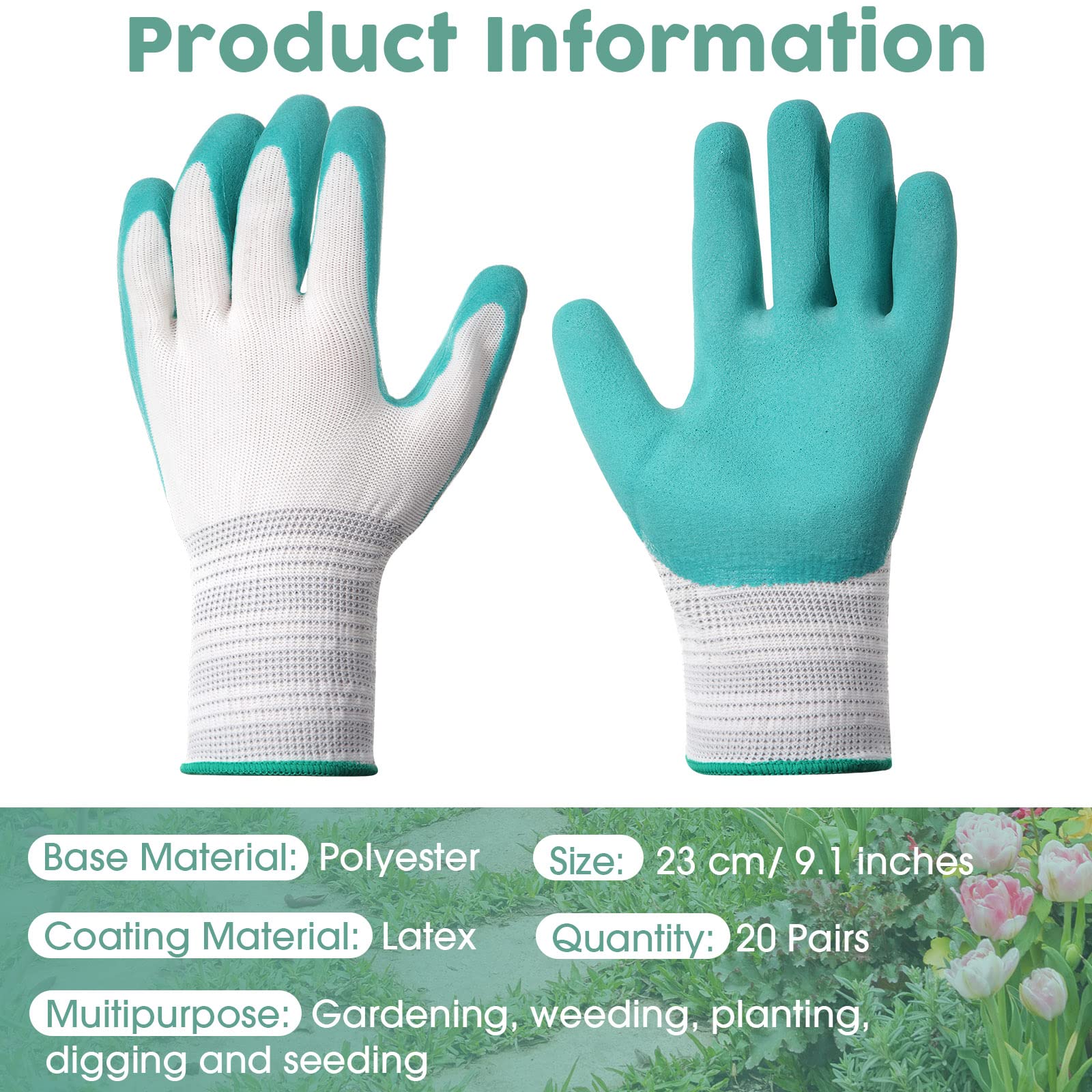 - Package Includes: you will get 20 pairs of garden gloves for women; Buy several and always have an extra pair on hand; Don't be fooled by their lightweight appearance, these gardening gloves are tough as nails; It's normal if the work gloves are smelly, because the gloves absorb damp; Please take them out and dry them in the sun