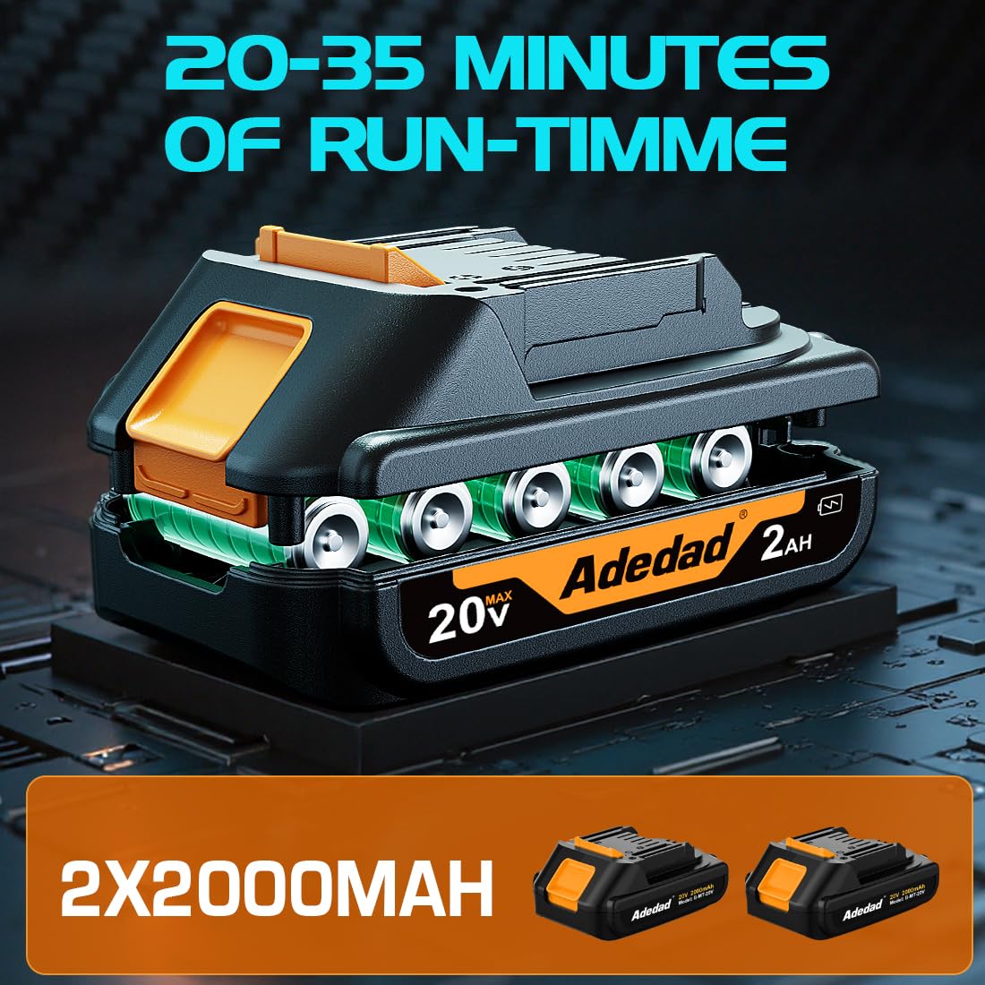 - ➽ Dual 21V 2.0AH Batteries for Extended Runtime: Equipped with two powerful lithium batteries, our yard blower offers up to 60 minutes of continuous operation in low-speed mode. No need for frequent recharging, even for large cleaning tasks, making your work more hassle-free.
