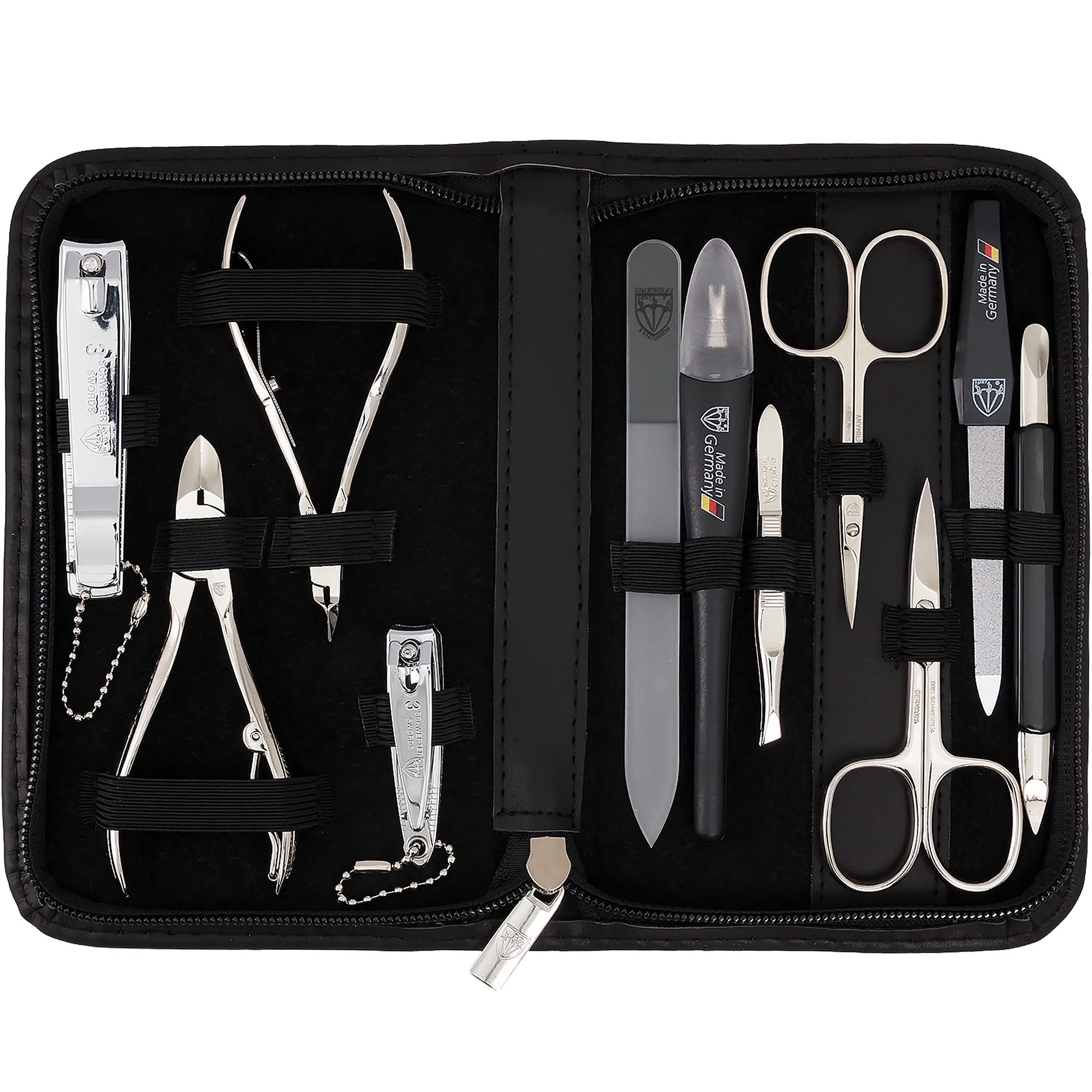 Elevate your at-home nail care routine with the premium 3 Swords Germany Manicure Pedicure kit Set. Each tool in this set is expertly made in Solingen/Germany, known for its exceptional craftsmanship. Keep your nails looking flawless with the convenience of a sleek Genuine Leather case.