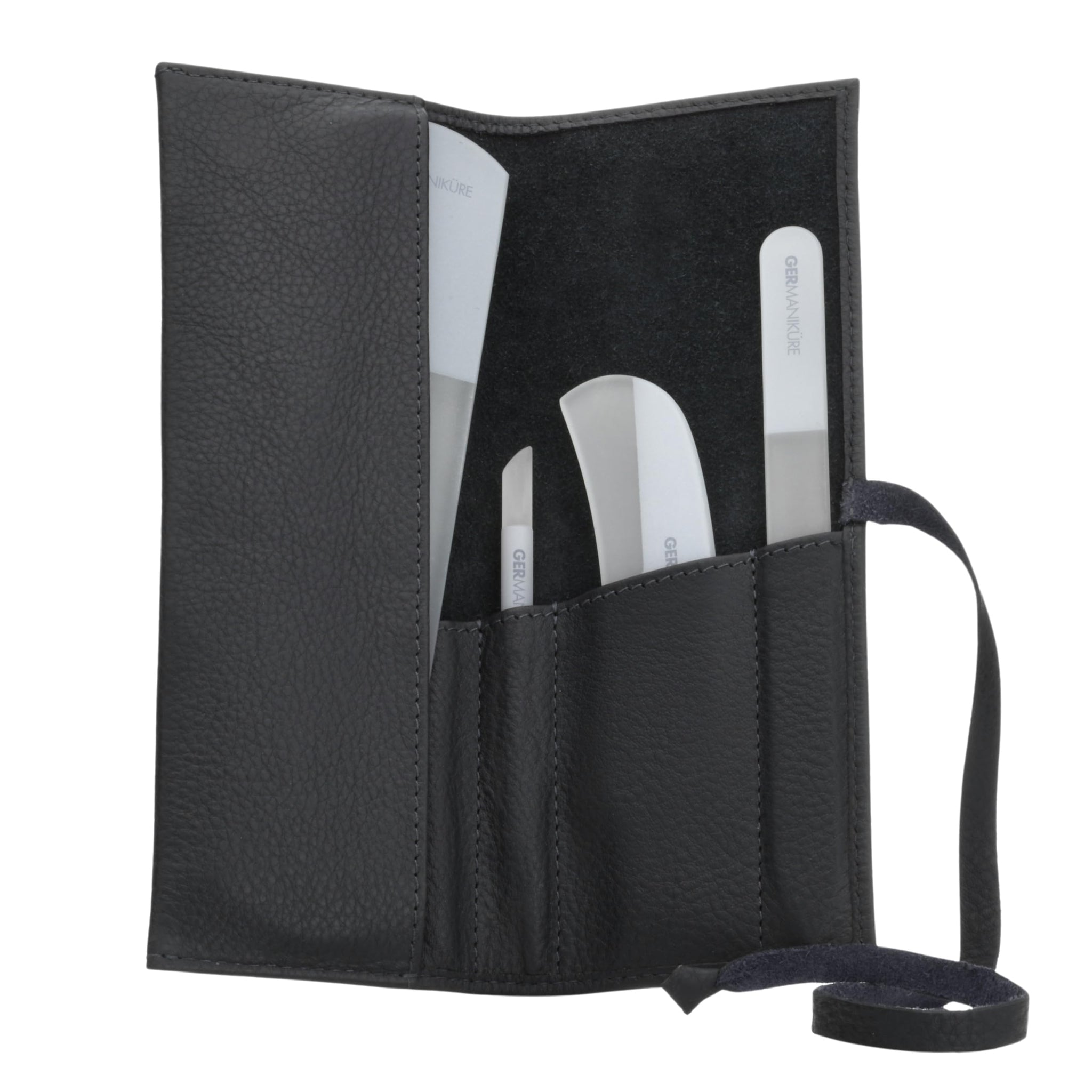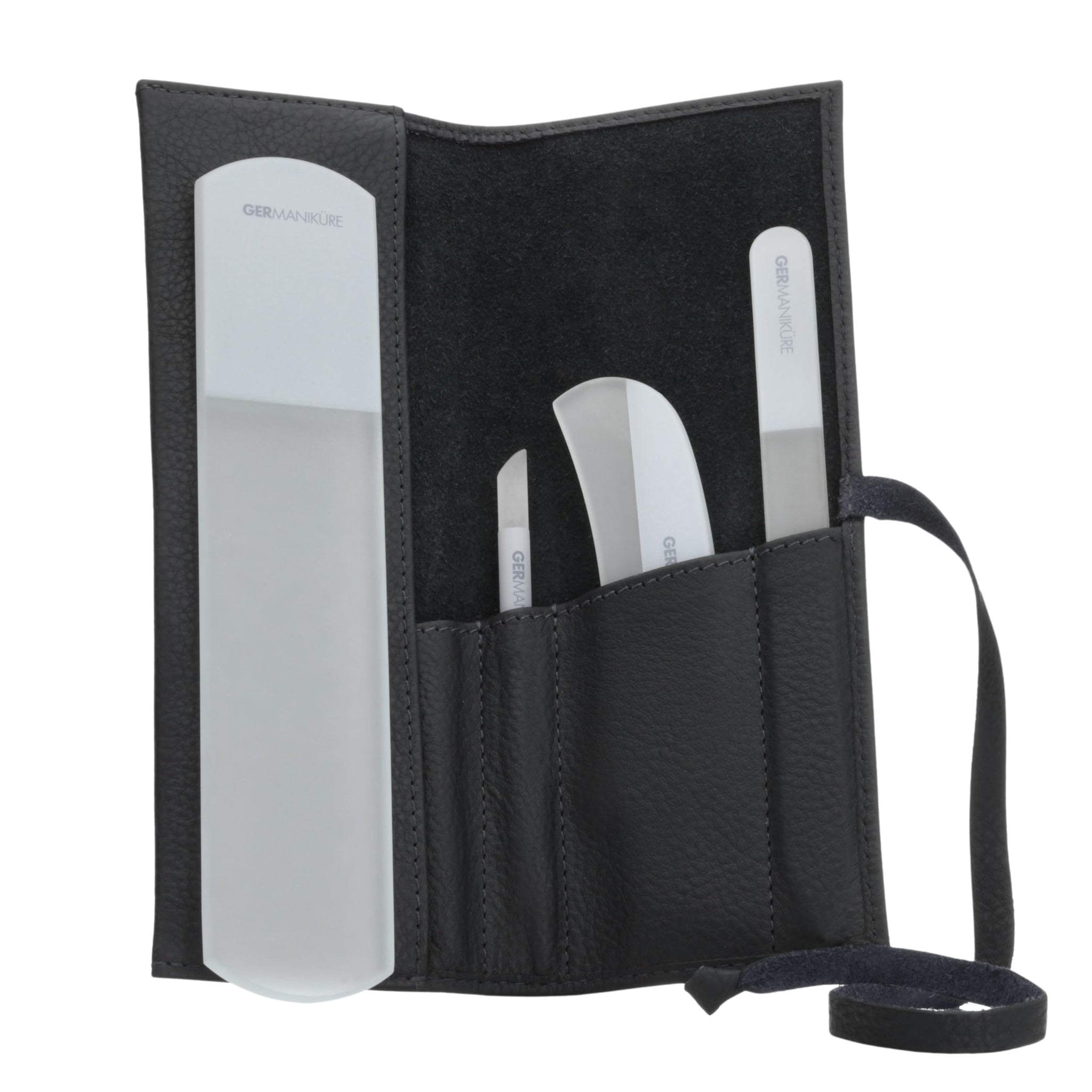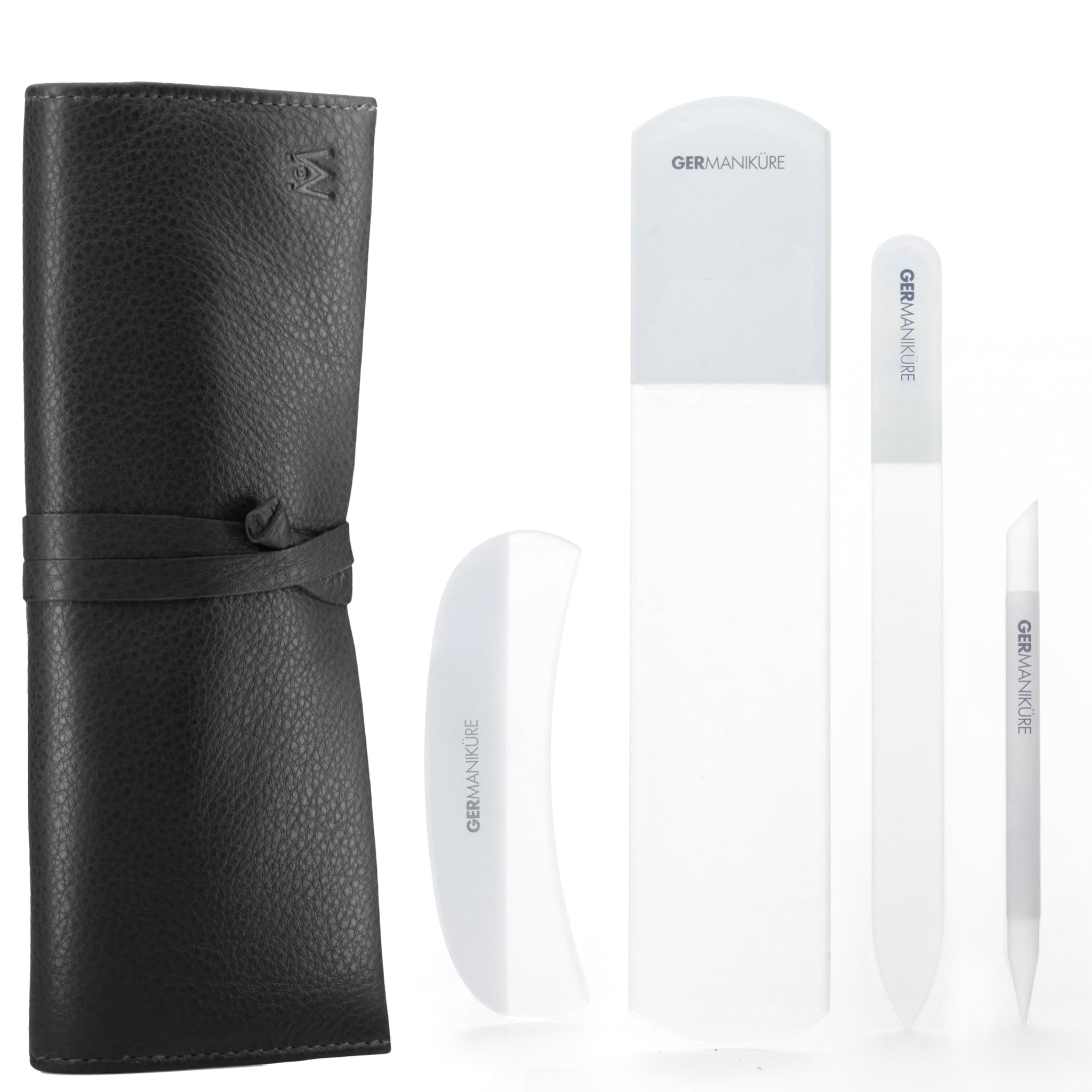 Elevate your nail grooming routine with the exquisite 4pcs Manicure Set by GERmanikure. Crafted with Genuine Czech Crystal Glass Nail File, Moon File, Manicure Stick, and Pedicure Foot Care Bar, this set is designed for luxury and functionality. Keep your nails in top shape with the best tools on the market, all neatly organized in a sleek leather case.