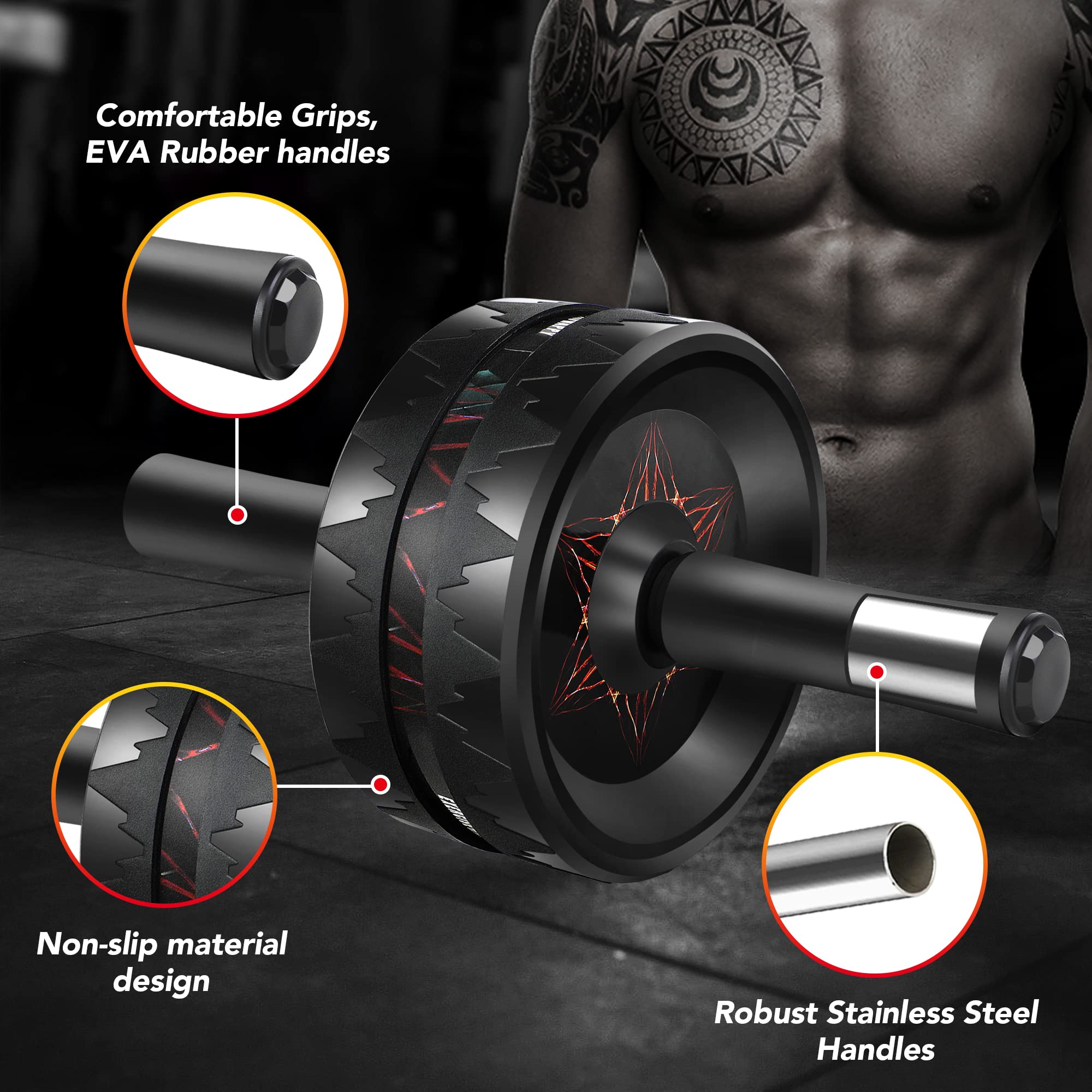 Abiarst Ab Roller Wheel, Abs Workout Equipment for Abdominal & Core Strength Training, Home Gym Exercise Wheels for Men Women, with Knee Pad Accessories