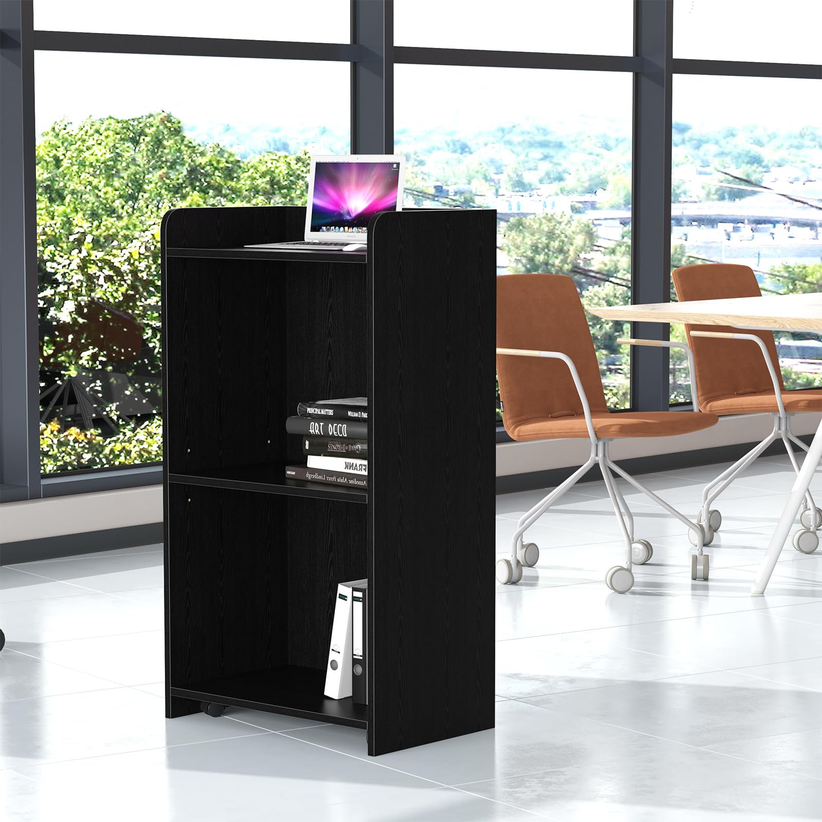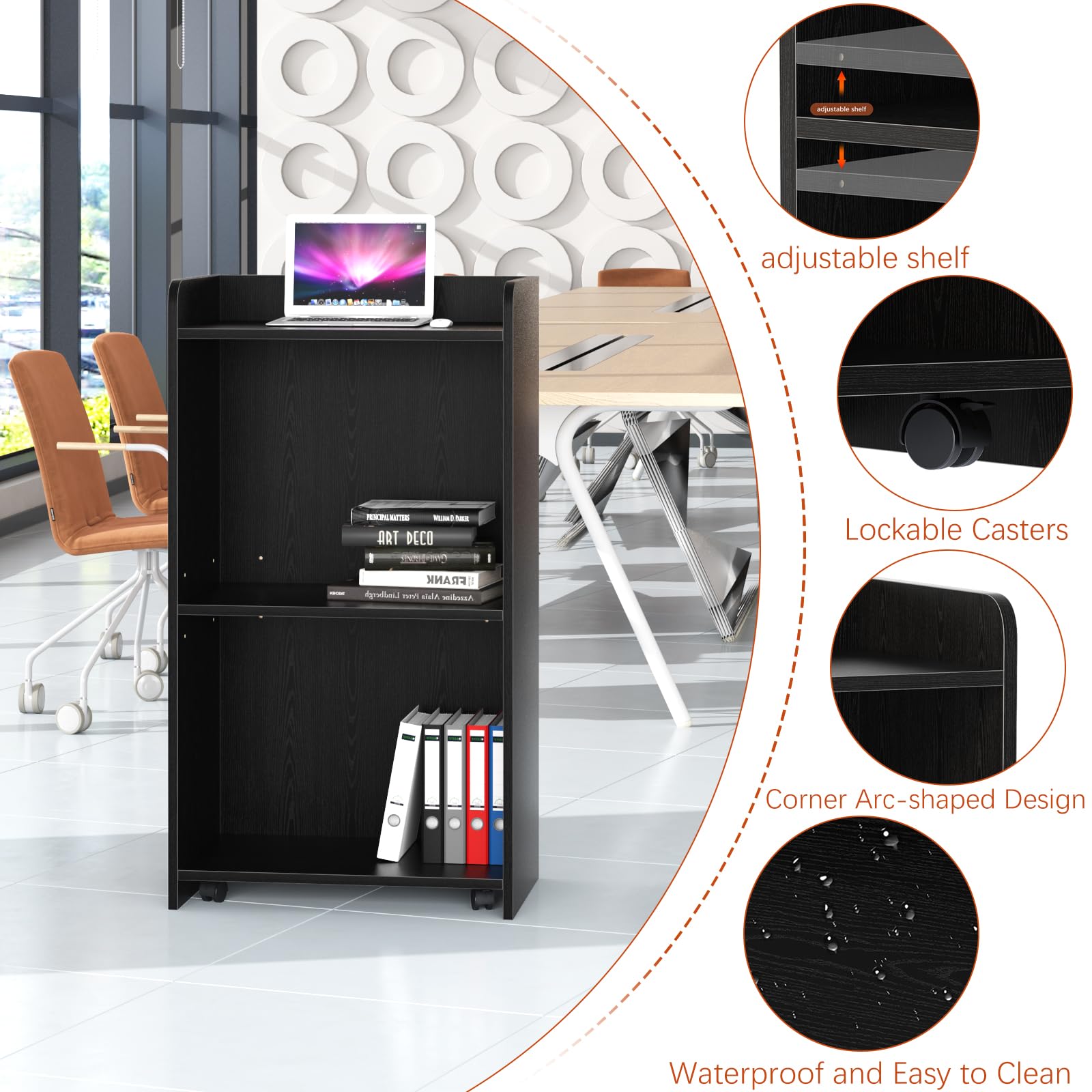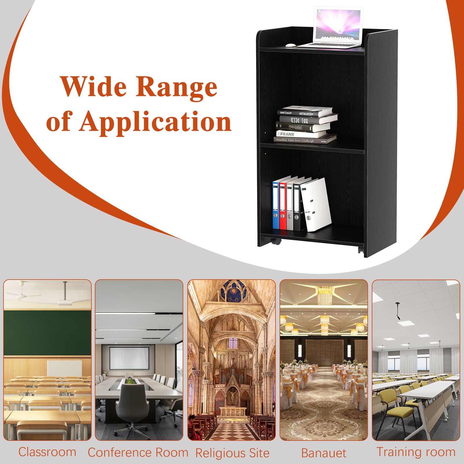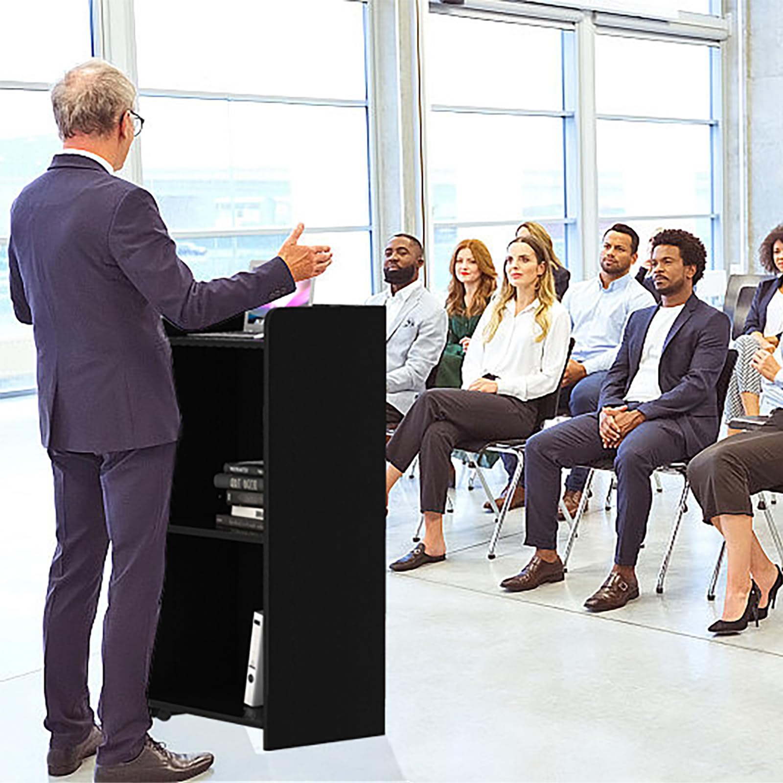 Mobile Stand Up Desk, Portable Podium and Presentation Lectern Height-Adjustable Multi-Purpose Standing Workstation,Black.