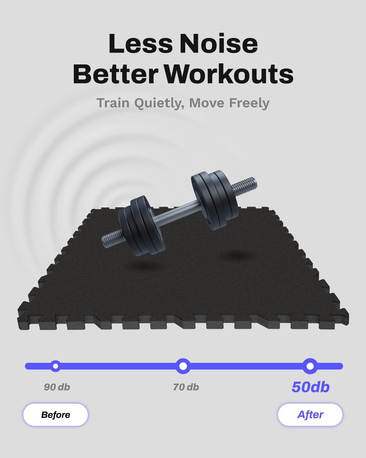 - [Effortless to Maintain]: Crafted from High-Density EVA Foam, these tiles minimize noise and vibration, allowing quiet and comfortable workouts. The waterproof feature makes cleaning a breeze with a damp cloth. Ideal for yoga, benches, workouts, treadmills, crossfit, kettlebells, cardio, and more.