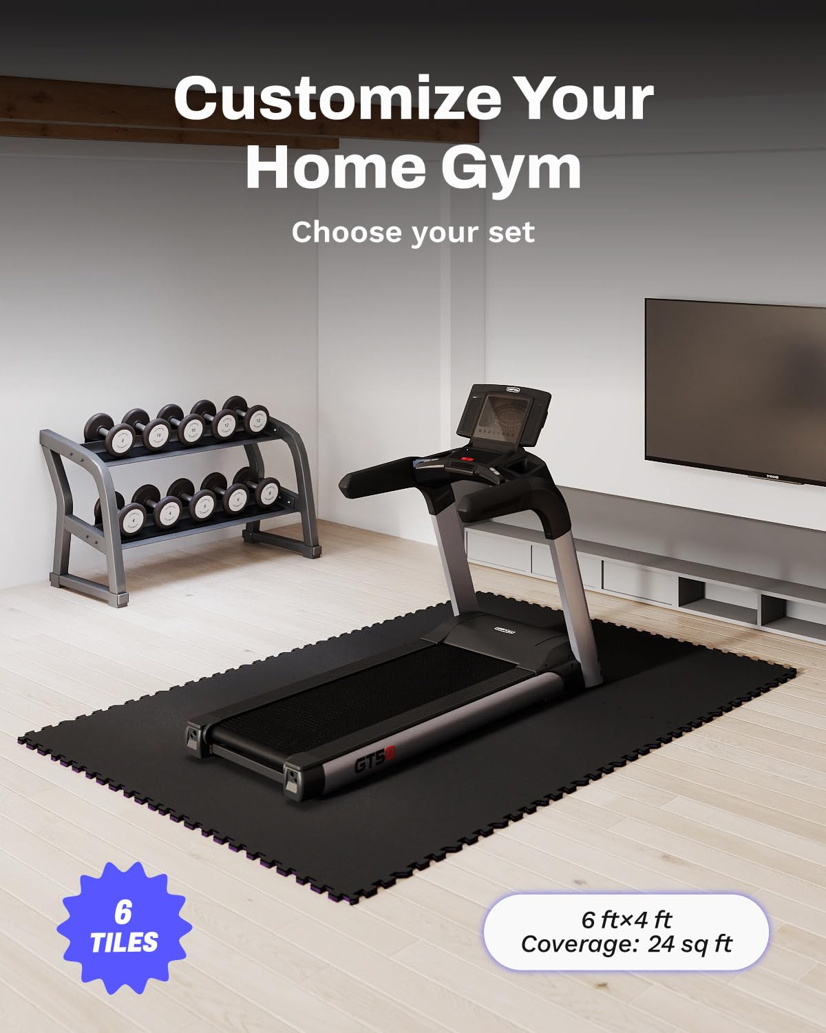 - [Easy to Assemble and Detach]: 6 tiles (24" x 24" x 0.79" each), covers 24 sq ft (6 × 4 ft). Upgraded larger interlocking locks provide a secure fit, preventing any separation during use, ensuring you can work out without concerns of shifting. Simple assembly and detachment make it effortless to set up your home gym.
