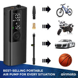 - QUICK & ACCURATE: Built with the highest quality materials, Airmoto is a portable tire inflator for car, trucks, SUVs, motorcycles, and bicycles. Quickly inflate your vehicle's tires in just minutes with precision accuracy up to 120 PSI. Small and compact car air pump that fits in your glove box or trunk.