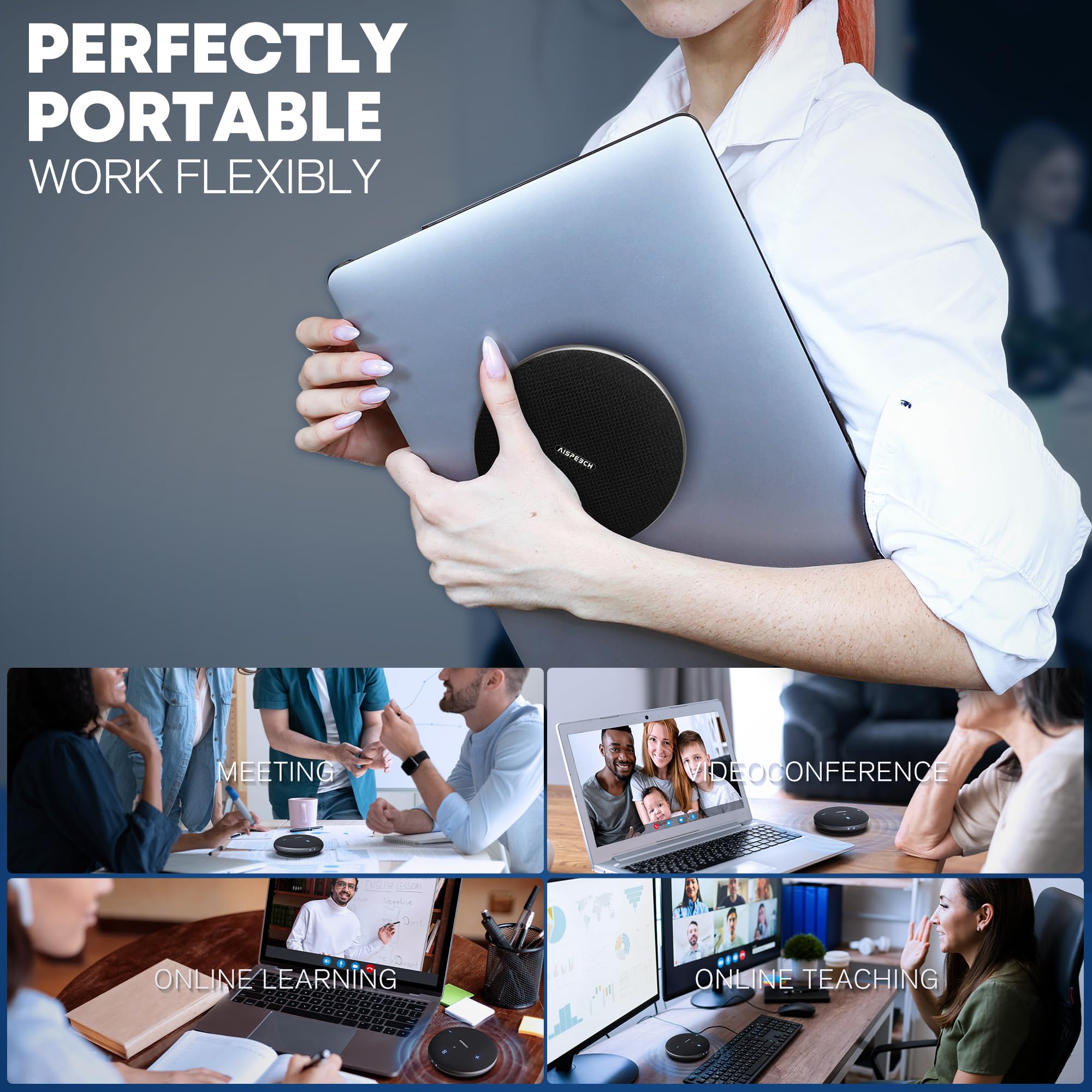 2-in-1 Conference Speaker and Microphone, Daisy Chain Wireless Bluetooth Speakerphone with 360° omnidirectional mics