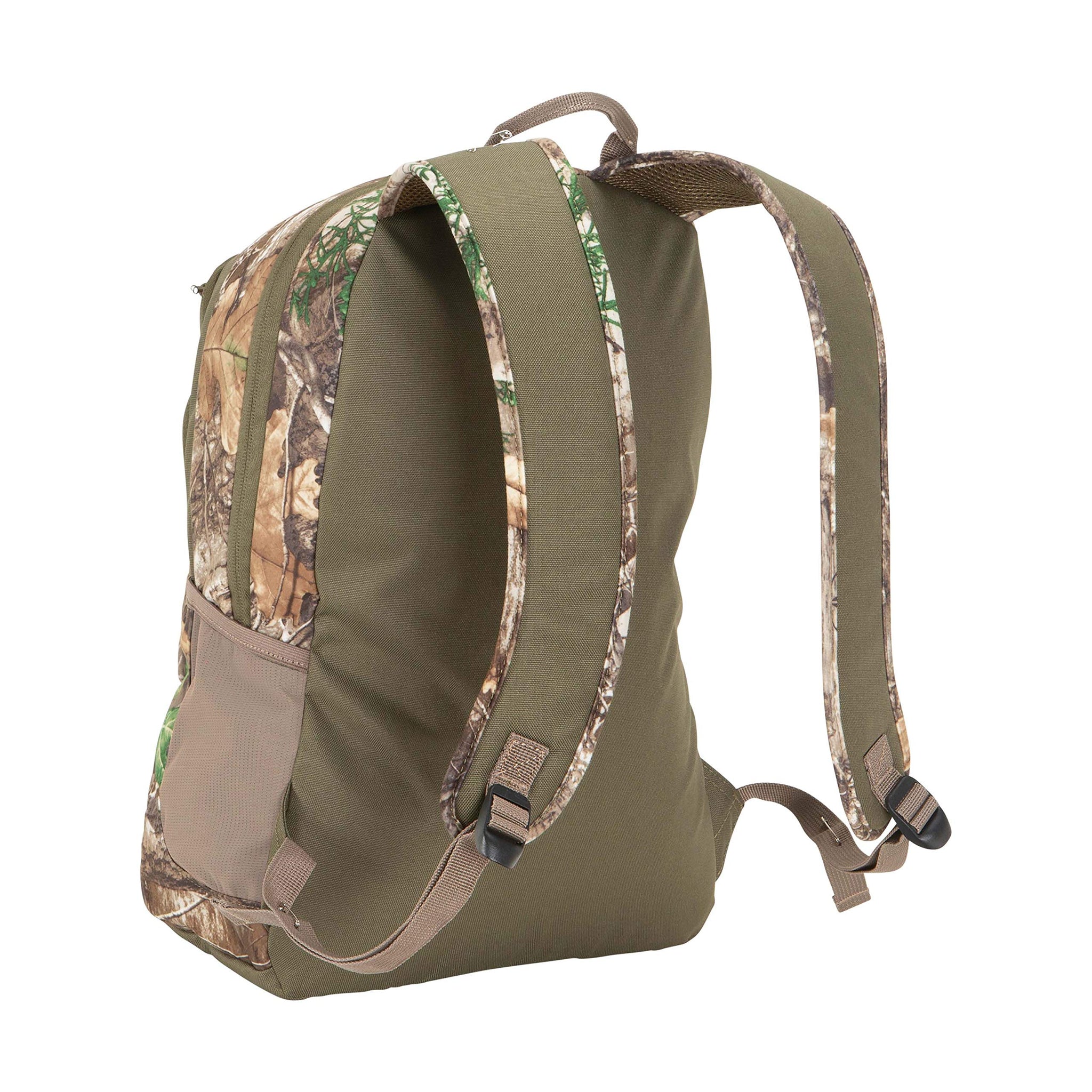 Details: The Cape daypack is made in Realtree Edge Camo and has a cargo capacity of 1350 cubic inches. Made with two large zipper compartments and inside the pack, there are individual organizer pockets, dual water bottle pockets and an elastic cord that can hold extra bulky items. The padded shoulder straps give you all-day carrying comfort and the built-in carry handle will hold strong when you have a full pack.