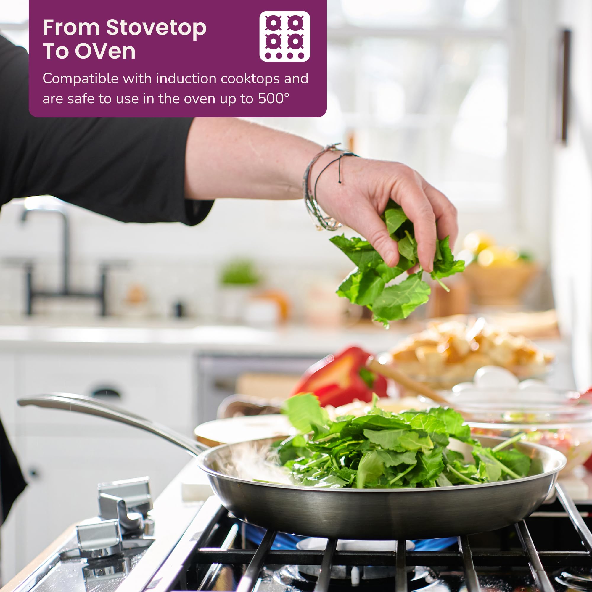 - Detailed Design: Our performance handles stay-cool while on the stove and ensure a comfortable grip, making cooking an effortless and enjoyable experience. Our stainless steel frying pan is designed to make cooking a breeze so you can focus on what matters most: making memories.