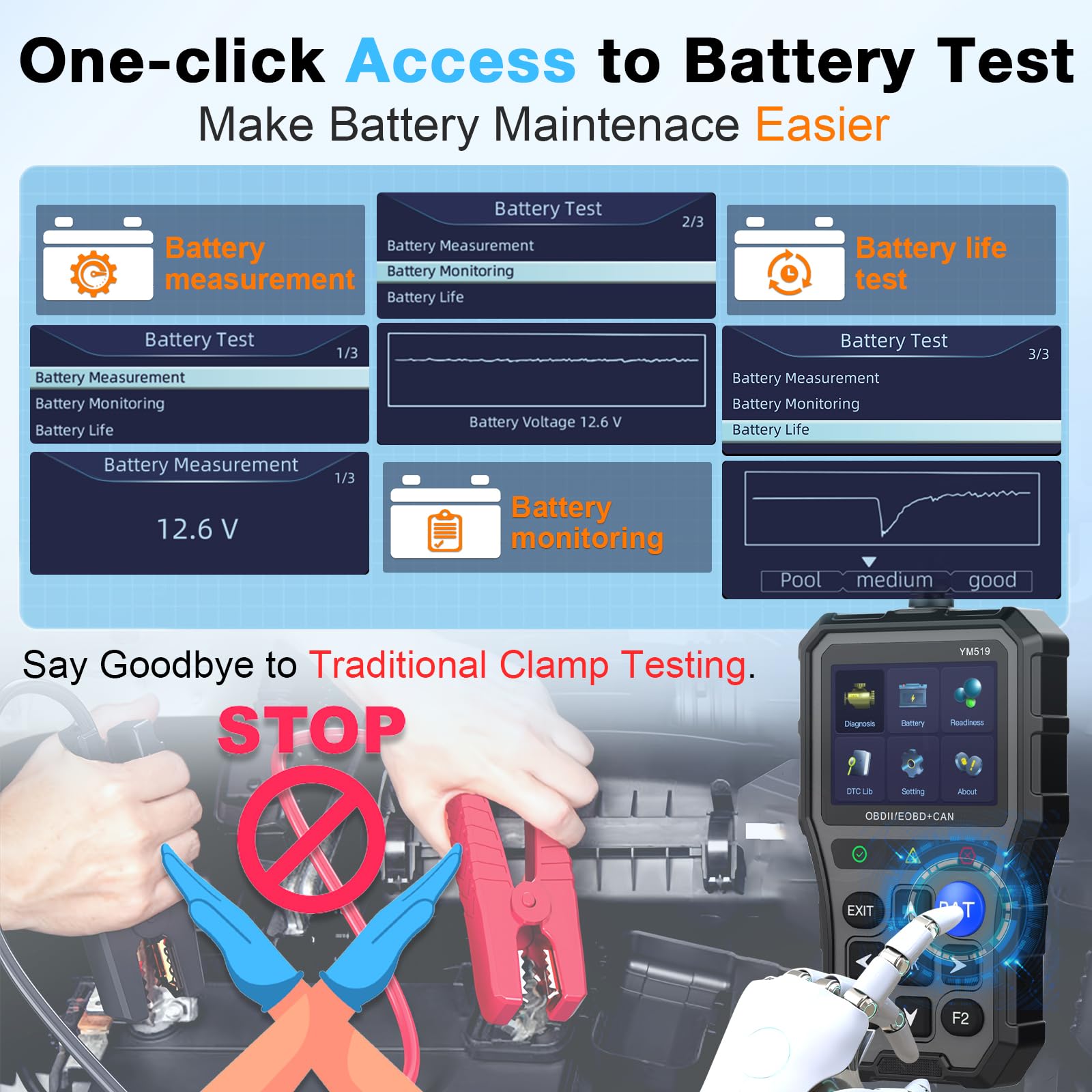 - Battery Health & Voltage Monitoring – Exclusive battery tester checks battery life, charge, and voltage, keeping you informed of your car's battery status at all times