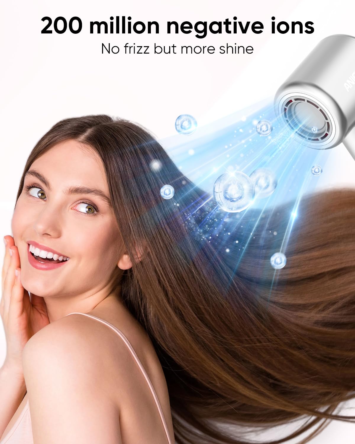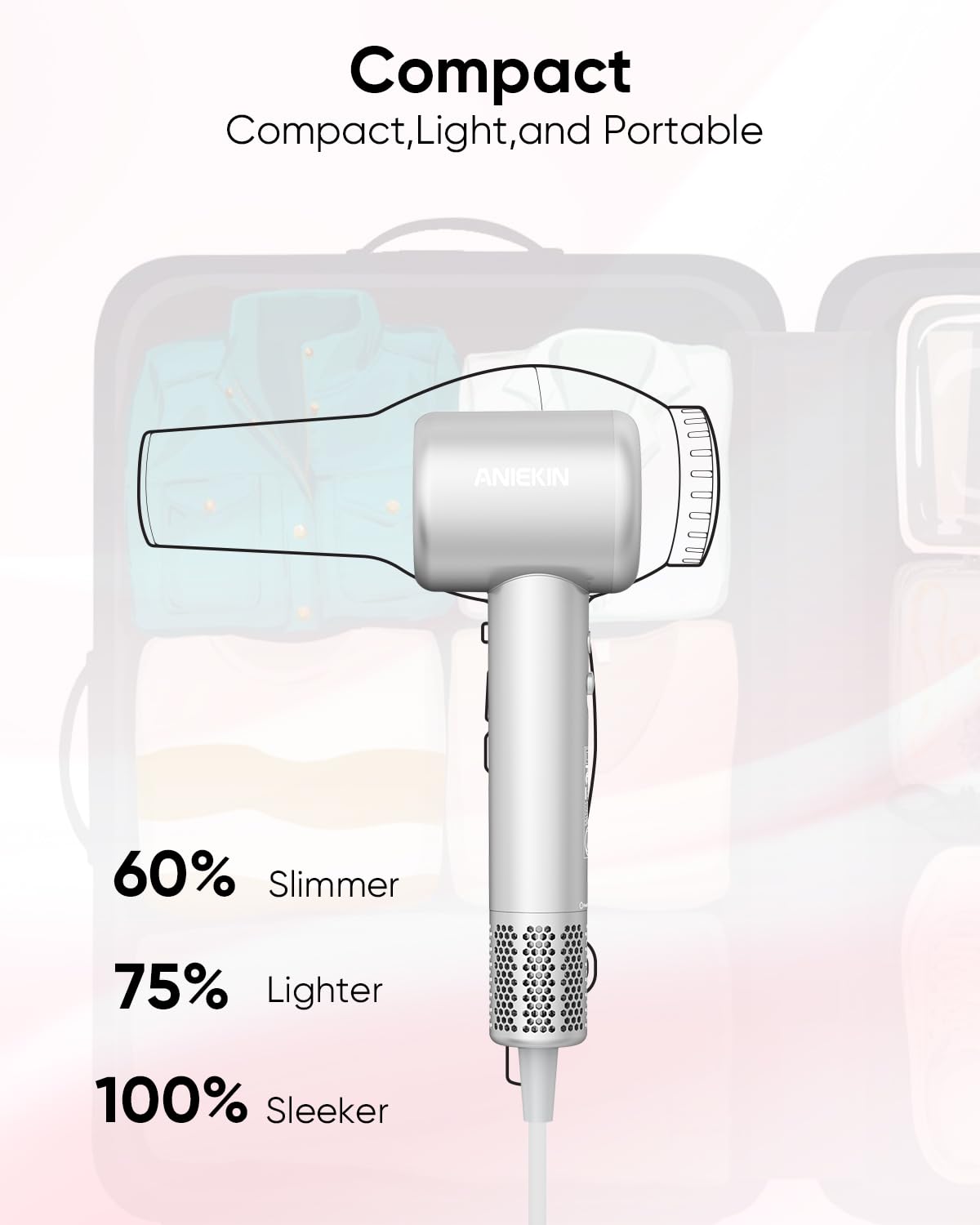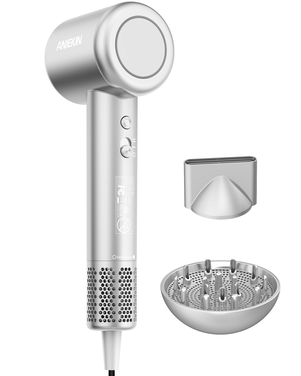 Elevate your hair styling routine with the ANIEKIN Hair Dryer. With a powerful 110,000 RPM motor, this fast drying ionic blow dryer is perfect for all hair types. Experience precision control with thermo control technology and enjoy a quiet blow drying experience. The magnetic diffuser included makes this dryer perfect for both home and travel use.
