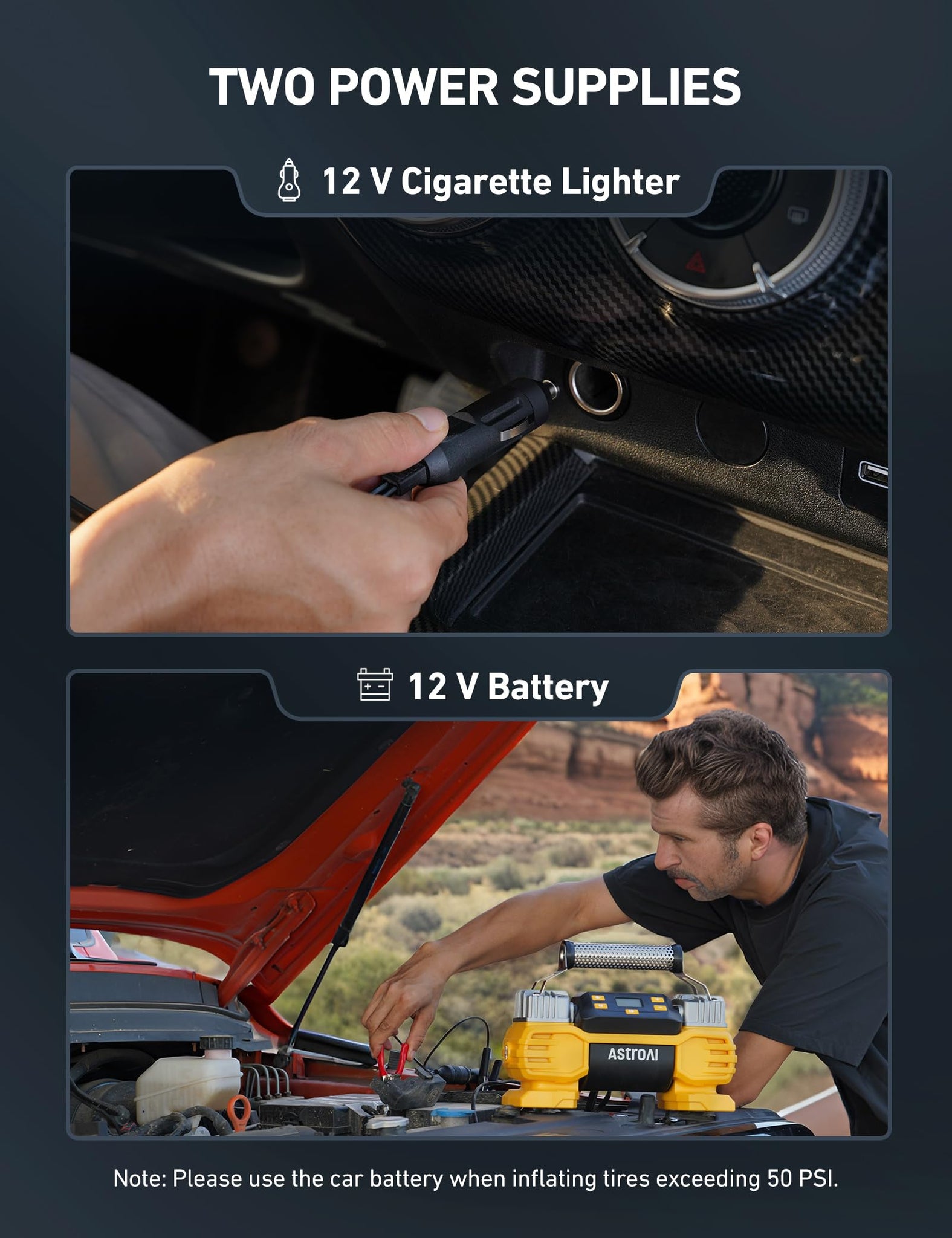 AstroAI T6 Offroad Air Compressor, 12 V Portable Air Pump with 7.06 CFM, AirCtrl, ¼ NPT Quick Connector