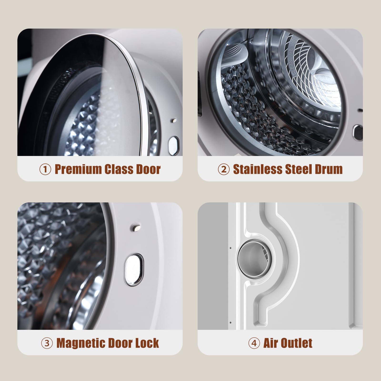 Introducing the ultimate solution for quick and efficient drying on the go - the Portable Dryer. This 110V 10Lbs Portable Clothes Dryer comes equipped with 5 drying modes to suit your specific needs. Its stainless steel tub ensures durability and reliability, while its compact design makes it ideal for use in apartments, laundry rooms, or even RVs. Say goodbye to bulky traditional dryers and hello to convenience with this 1.5 cu.ft Front Load Mini Dryer Machine.