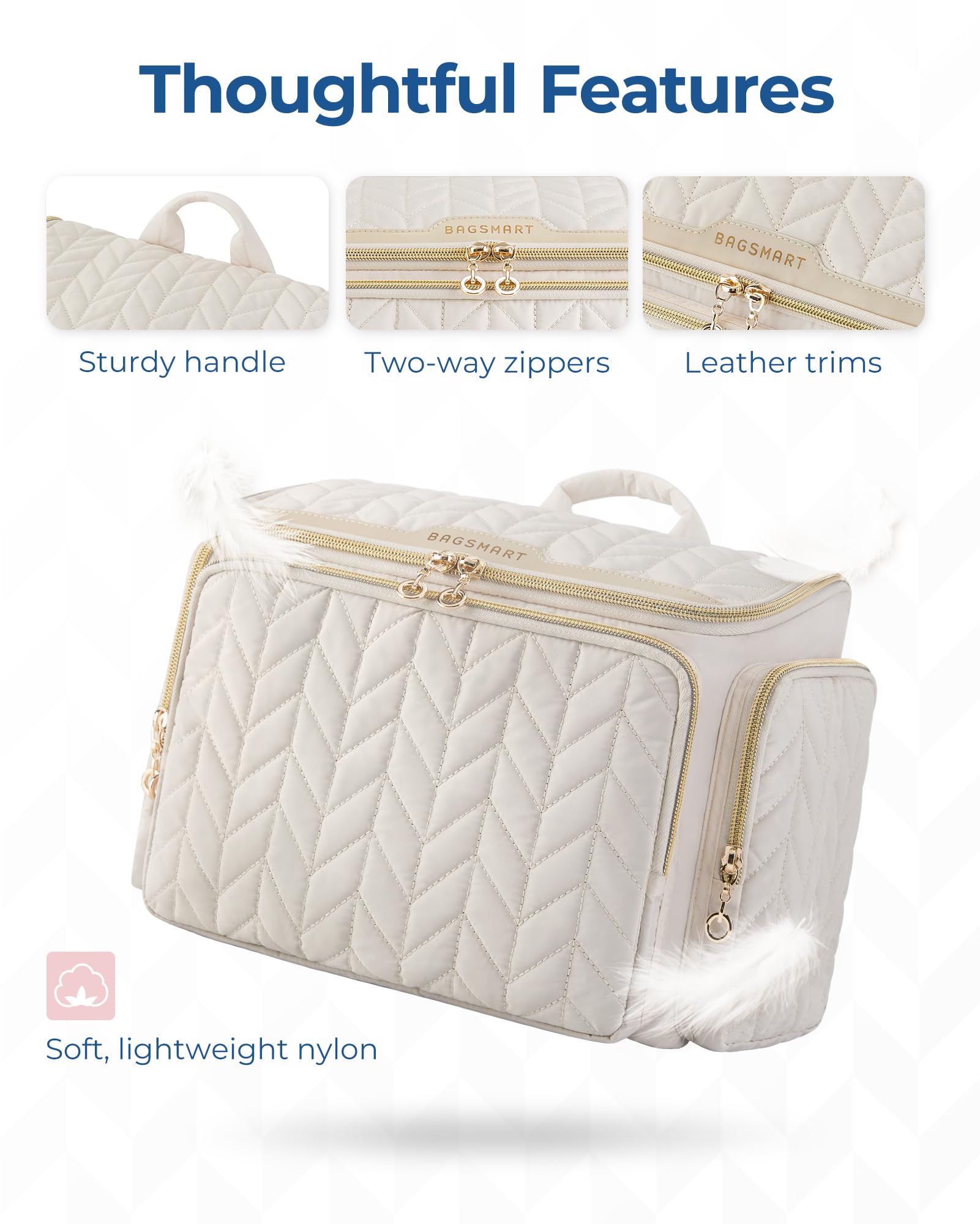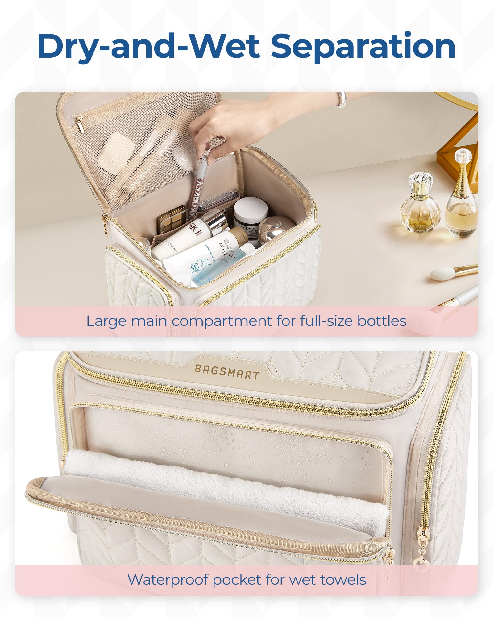 Elevate your travel experience with the BAGSMART Travel Toiletry Bag. This spacious bag allows you to pack all your toiletries and makeup essentials with ease. The wide-open design makes it simple to find what you need, while the durable black material ensures your items stay secure during your travels. With a convenient handle for portability, this bag is a must-have for any jetsetter.