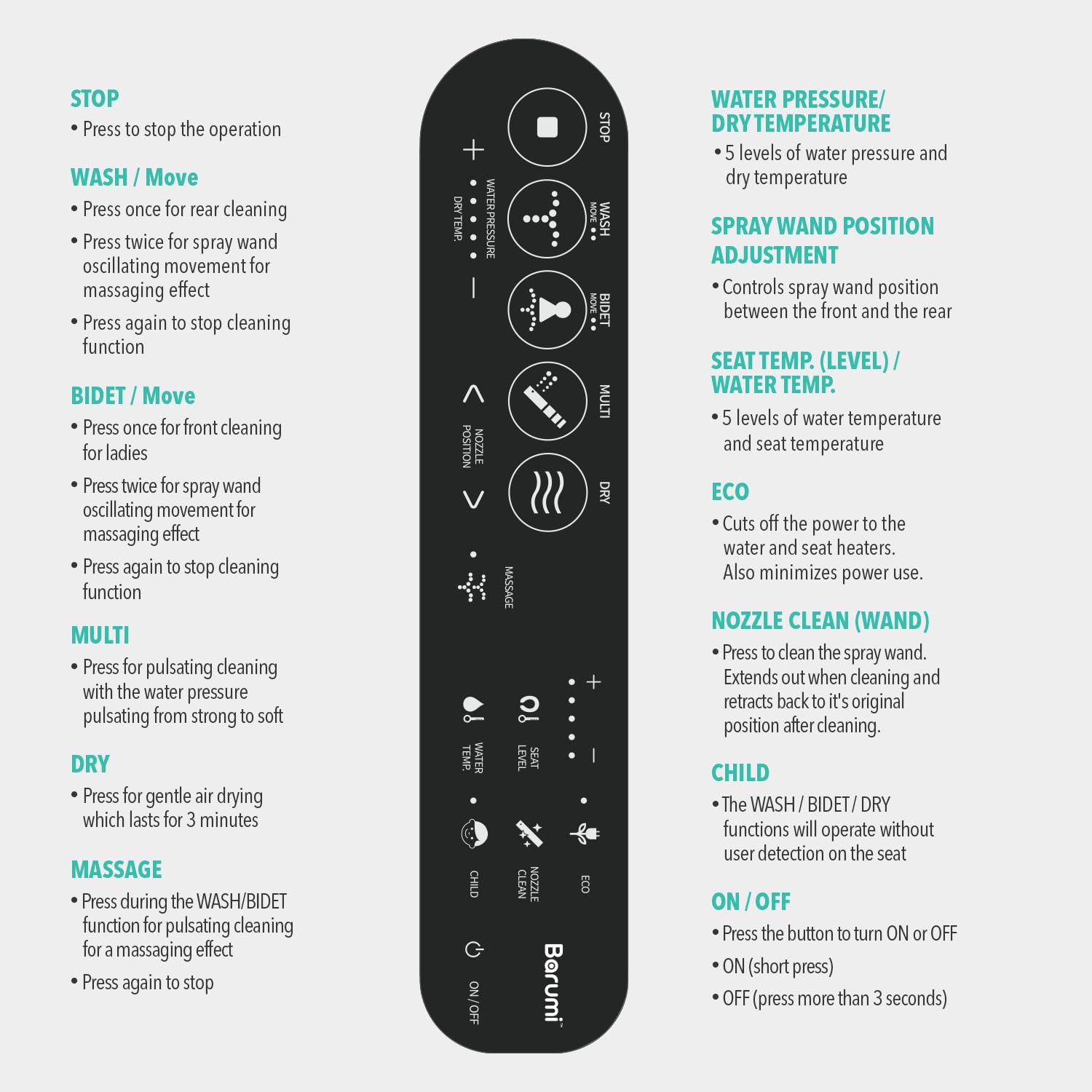 - CHILD & ECO-FRIENDLY MODES: Tailored for families, the child mode provides a gentle, safe wash for kids, while the eco mode saves energy by optimizing water and seat heating settings.