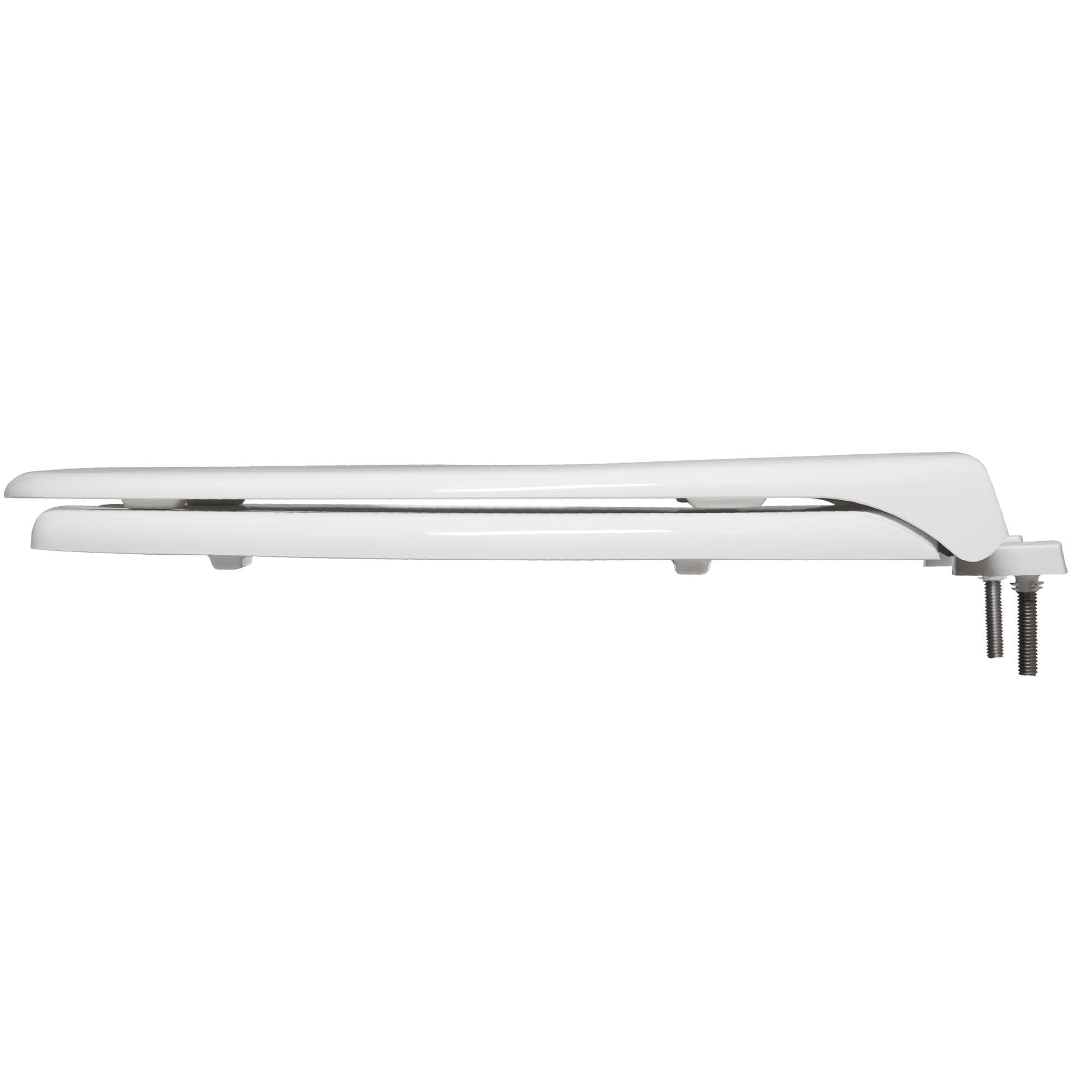 Upgrade your commercial restroom with the BEMIS 7850TDG 000 Commercial Heavy Duty Open Front Toilet Seat with Cover in ELONGATED, Plastic, White. Say goodbye to constantly tightening loose toilet seats and reduce call-backs with this durable and reliable option. Your patrons will appreciate the comfort and convenience of this high-quality toilet seat.
