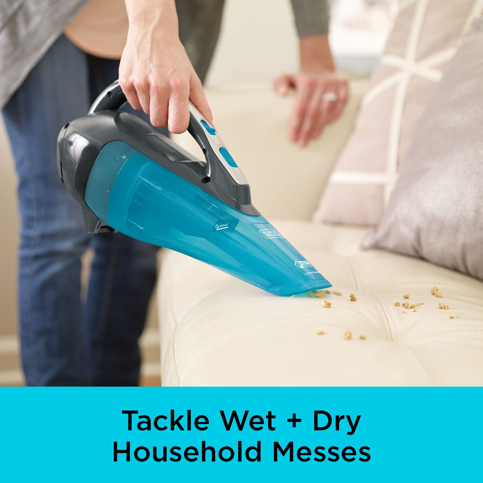 Details: Get tough on all types of household messes with the versatile dustbuster AdvancedClean wet/dry cordless handheld vacuum from BLACK+DECKER. It’s equipped with a push-in squeegee accessory that’s ideal for picking up liquid spills up to 8 oz. A powerful lithium ion battery supports this hand vacuum’s strong suction, allowing you to clean up dust and solid debris, too. The translucent dirt bowl lets you see inside, so you’ll always know when to empty it. Plus, both the dirt bowl and filter can be rinsed out right in the sink. The convenient wall mount lets you charge and store the vacuum at the same time, and an indicator light notifies you when the vacuum is fully charged and ready for the next job.