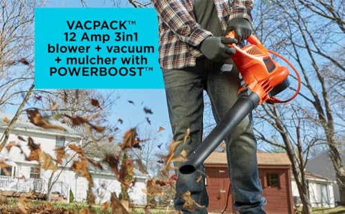 Details: The BLACK+DECKER 12 Amp VACPACK 3in1 electric leaf blower + leaf vacuum + mulcher takes an innovative approach to yard cleanup and maintenance. This 3in1 can be used as a corded leaf blower to clear debris away from walkways and lawns, as well as a leaf vacuum and a mulcher. It’s designed to be worn just like a normal backpack, keeping your hands free and your posture upright. The backpack features a large, zipper-free bag that’s reusable and easy to empty. Plus, POWERBOOST gives you more power when you need it, while the flexible tube increases maneuverability. The corded design means you’ll never run out of power.