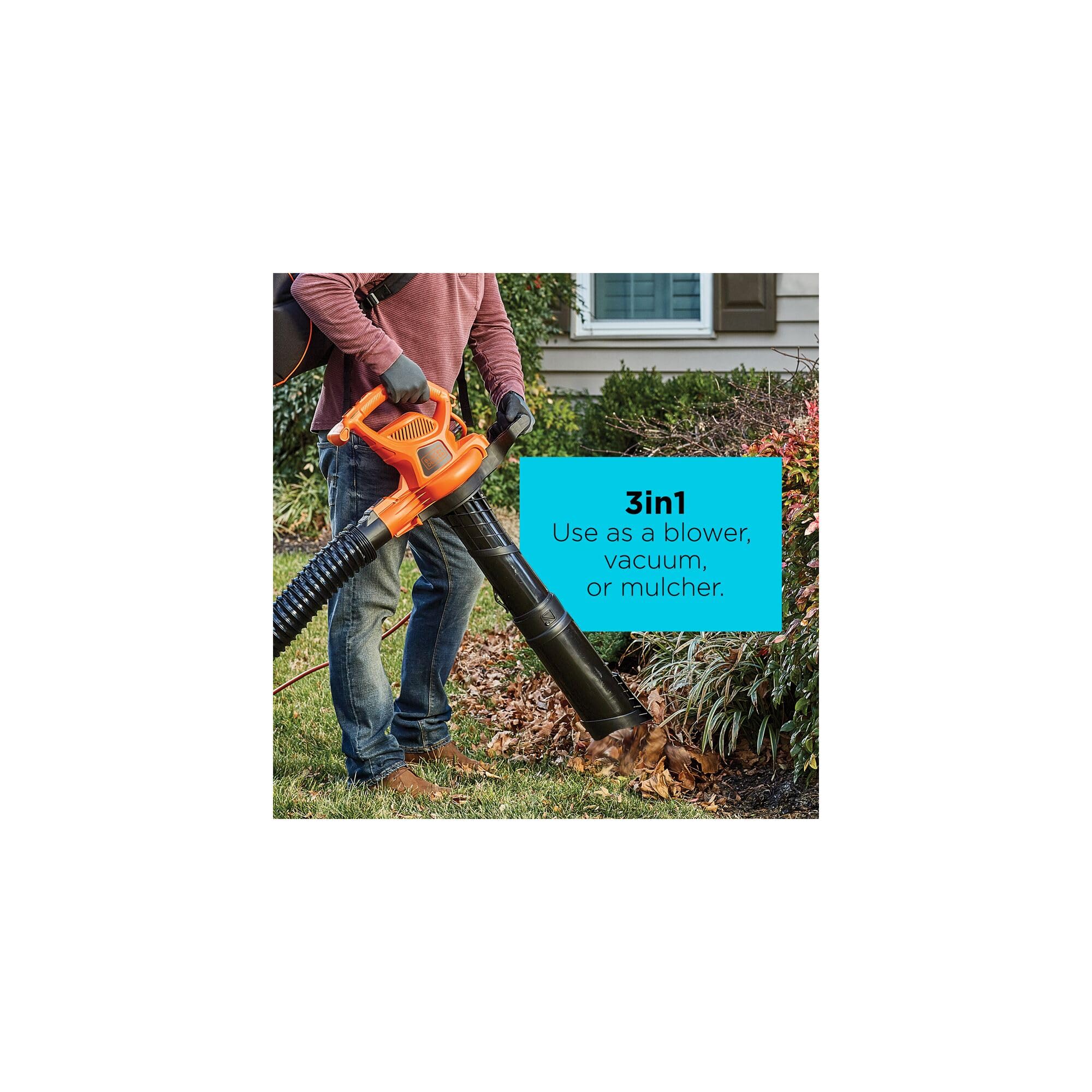 - 3IN1 DESIGN – Easily converts into a corded leaf blower, leaf vacuum, or mulcher for versatile use..Blower is ideal for clearing debris from hard surfaces and leaves from yard. Vacuum is ideal for mulching leaves and other lawn debris INCLUDES – (1) BEBL7000, (1) blow tube, (1) vac tube, (1) backpack bag.