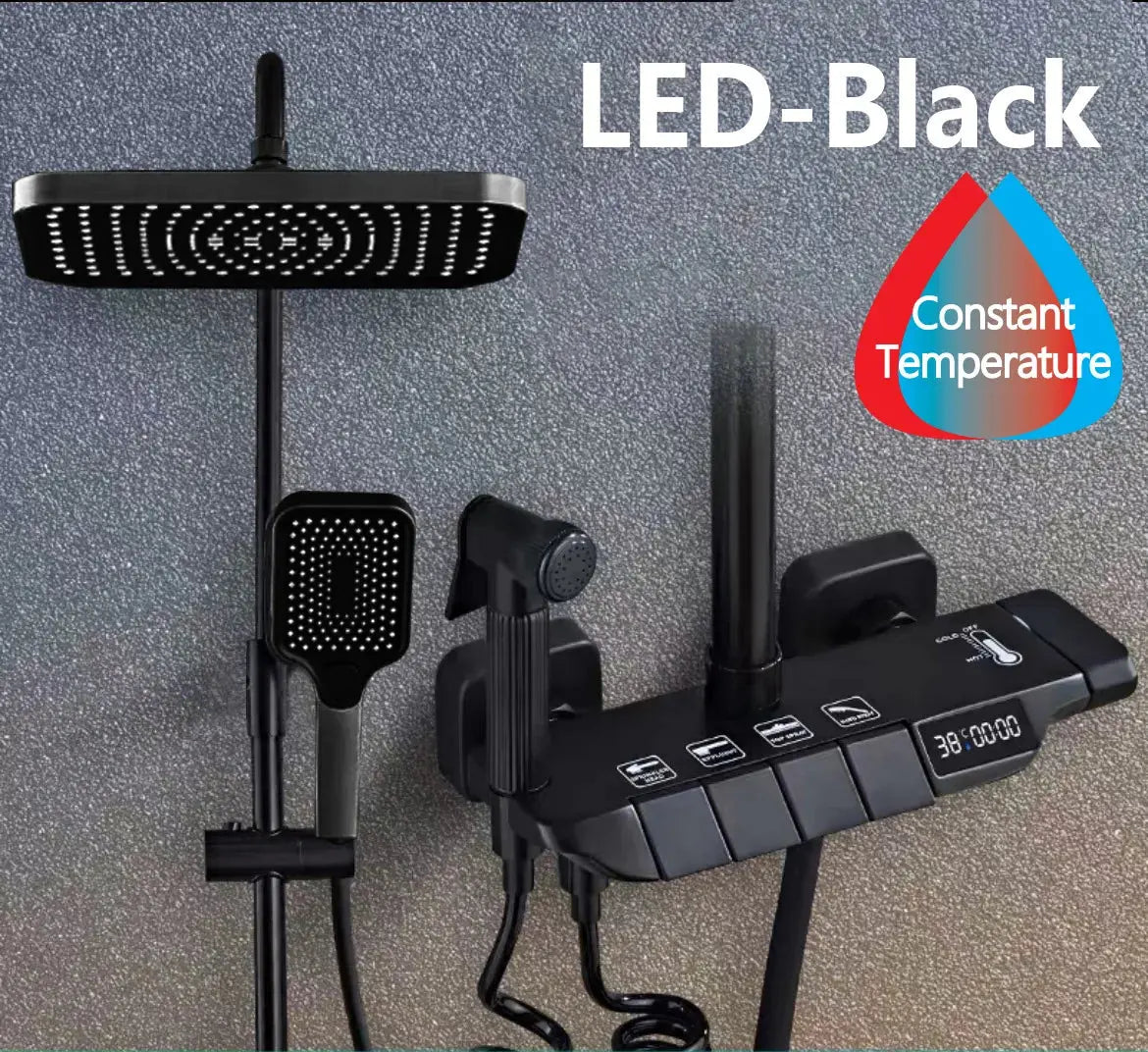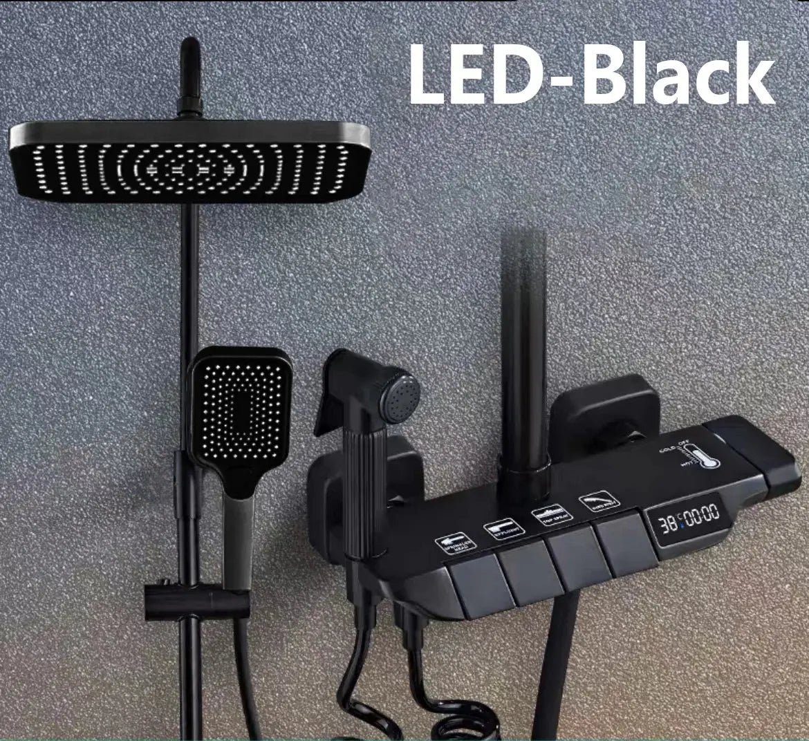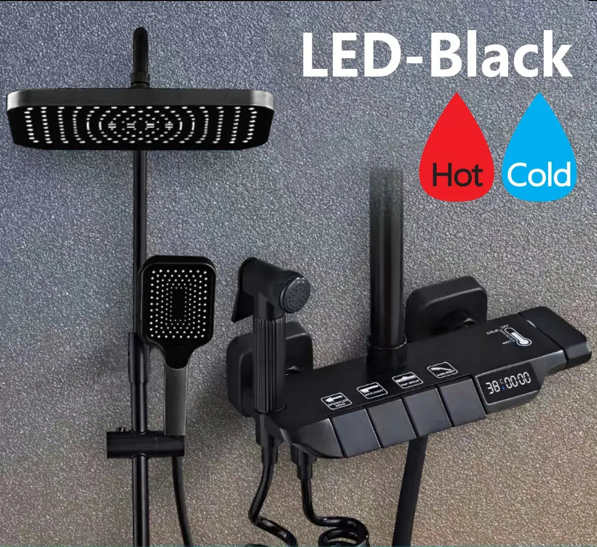 Enhance your bathroom experience with our Black Digital Shower Set. With its sleek brass design, this wall-mounted rainfall faucet exudes elegance and functionality. Say goodbye to manual handles and hello to touchless convenience with this automatic faucet.