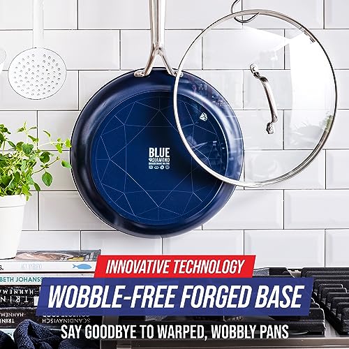 - DIAMOND-TOUGH EXCELLENCE: Metal utensil safe surface with diamond-infused ceramic nonstick - 5x harder and 10x longer lasting than traditional coatings. Tough enough for your toughest recipes!
